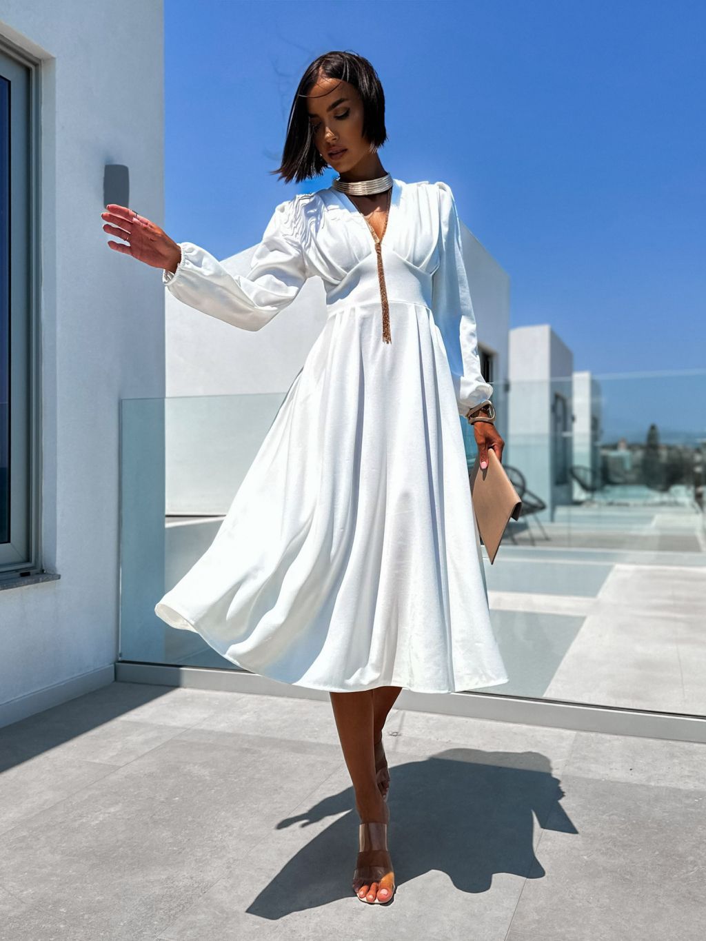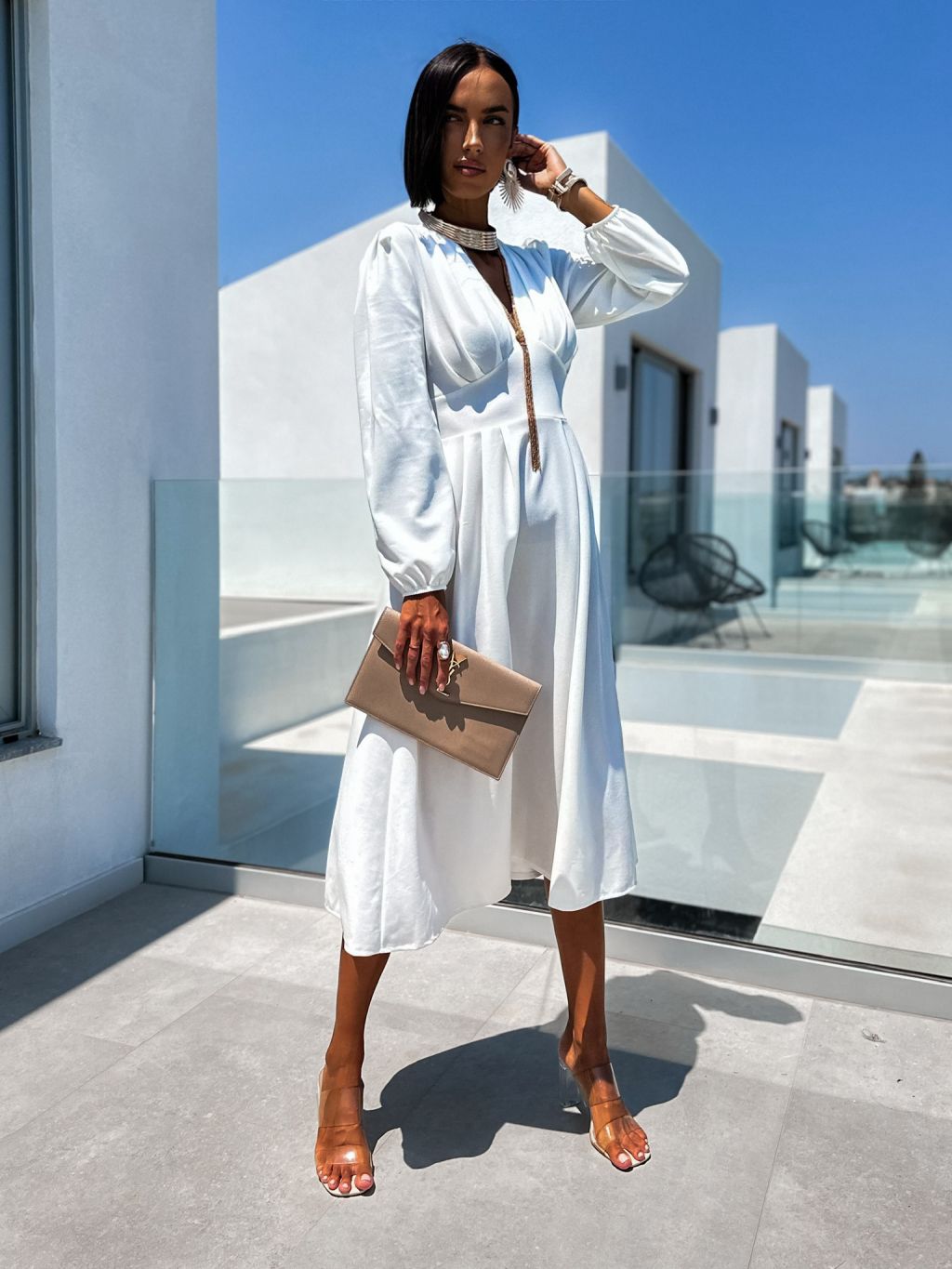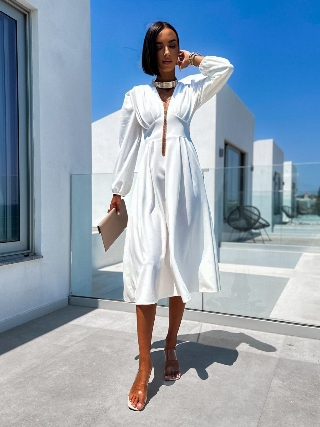 Biele elegantné šaty PHINANEY s dlhým rukávom
