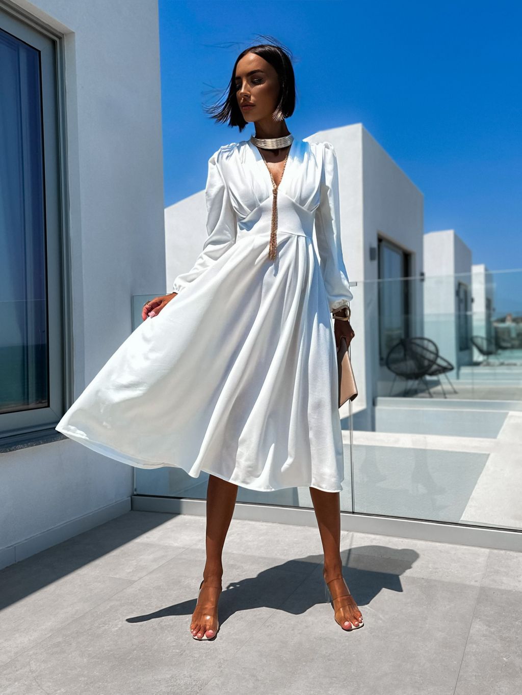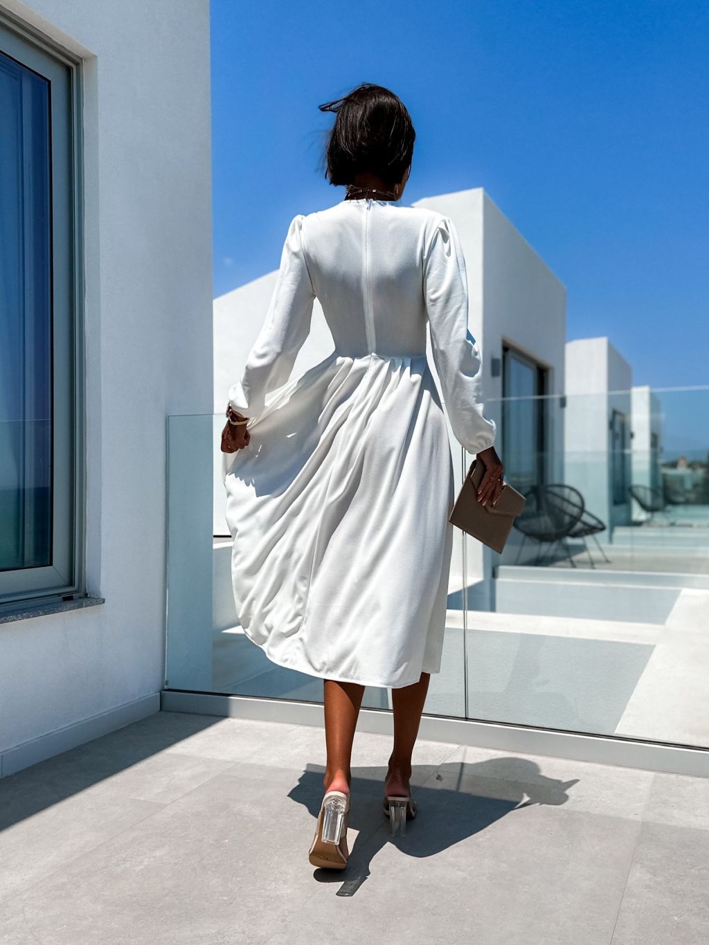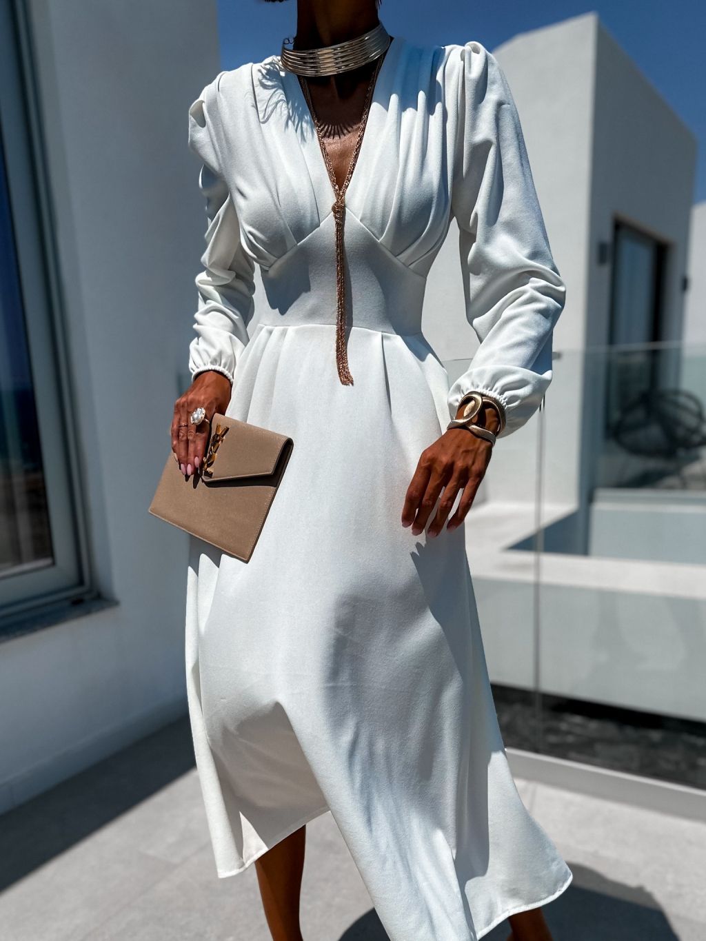 Biele elegantné šaty PHINANEY s dlhým rukávom
