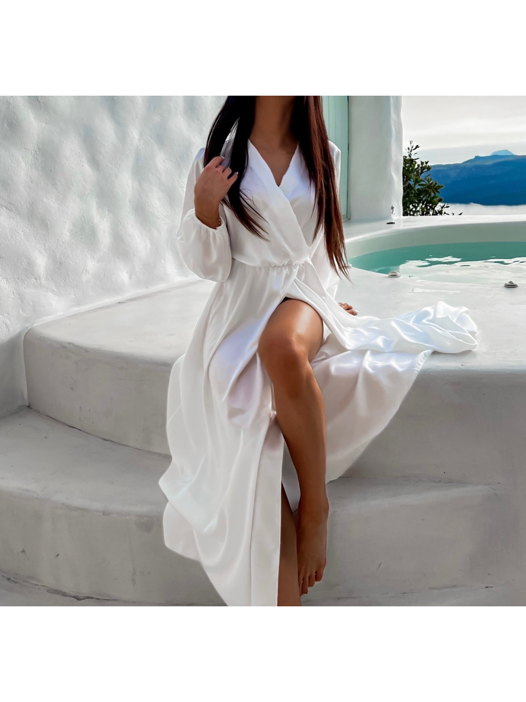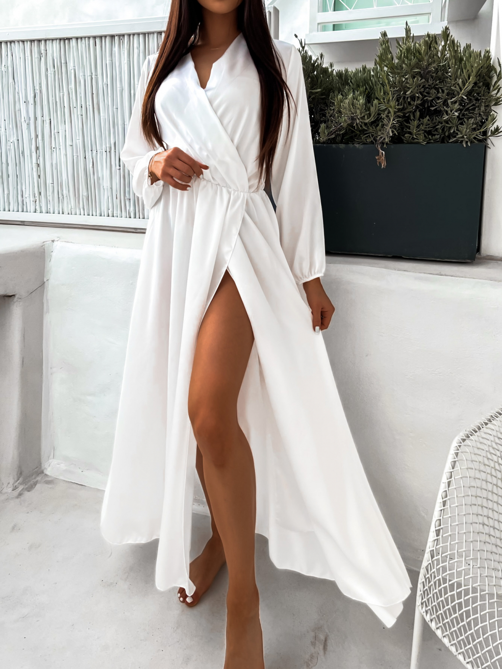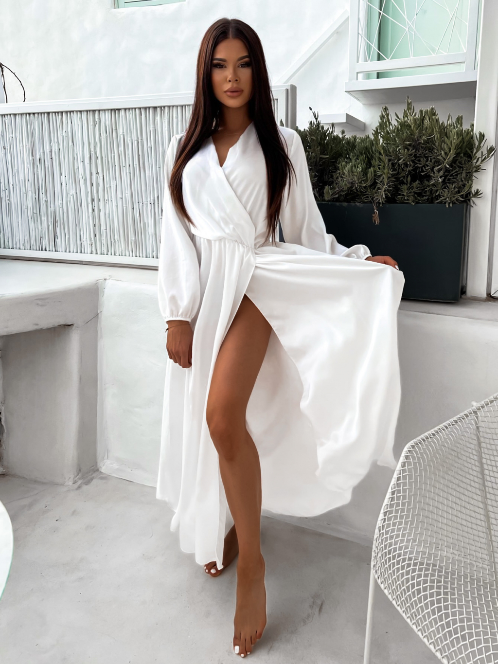 Biele elegantné šaty WOMAN s dlhým rukávom