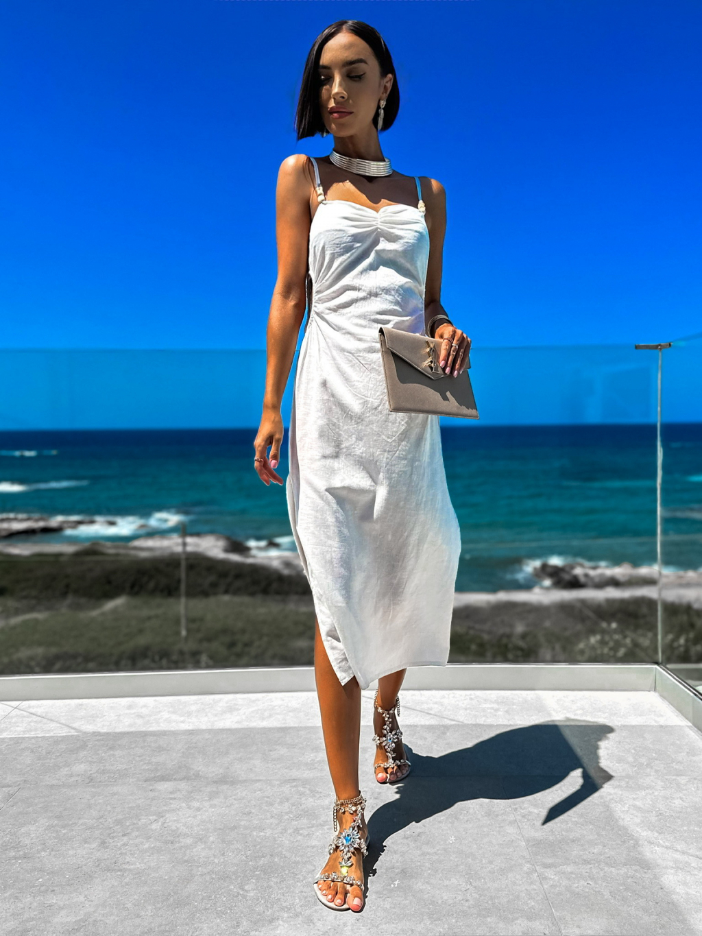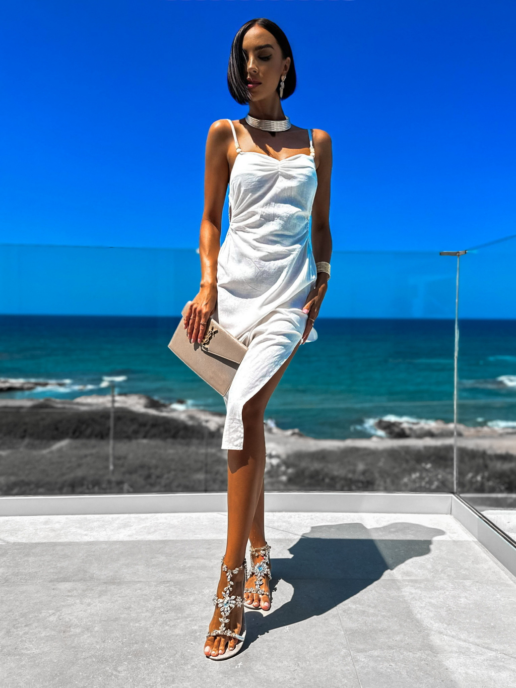 Biele ľanové šaty MELIAN s prestrihmi