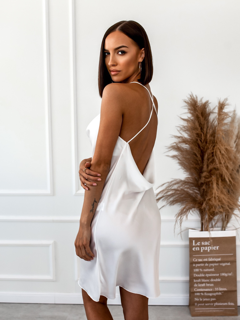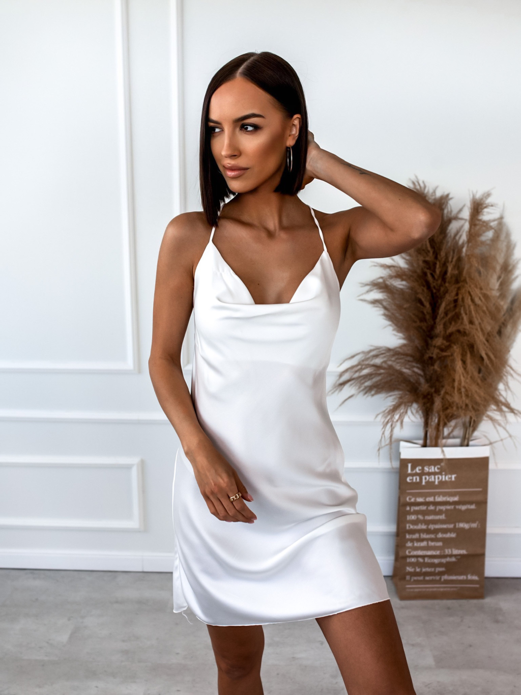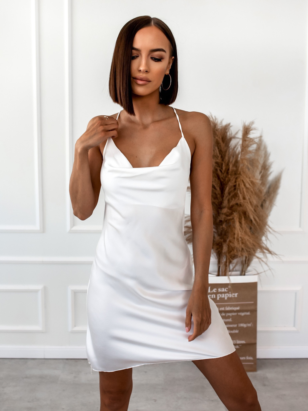 Biele lesklé šaty IZZY s tenkými ramienkami