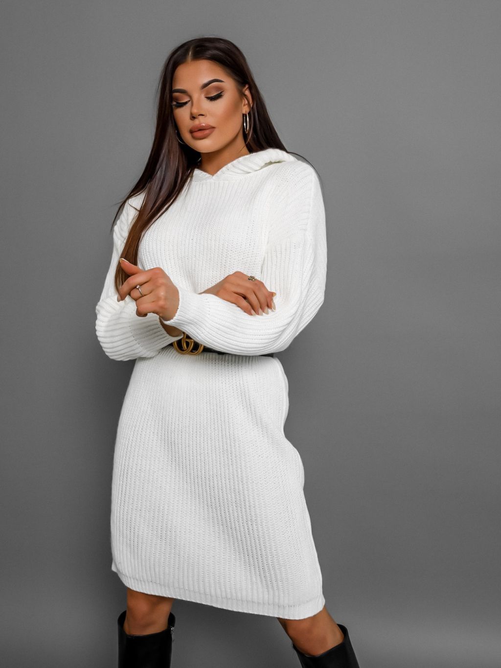 Biele pletené svetrové šaty NOMINATE s kapucňou