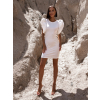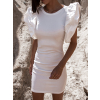 Biele rebrované šaty ROWEN s nariasenými rukávmi