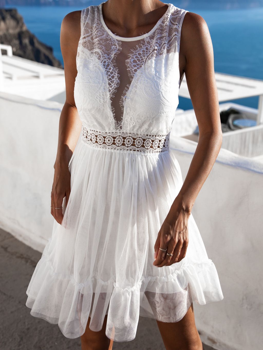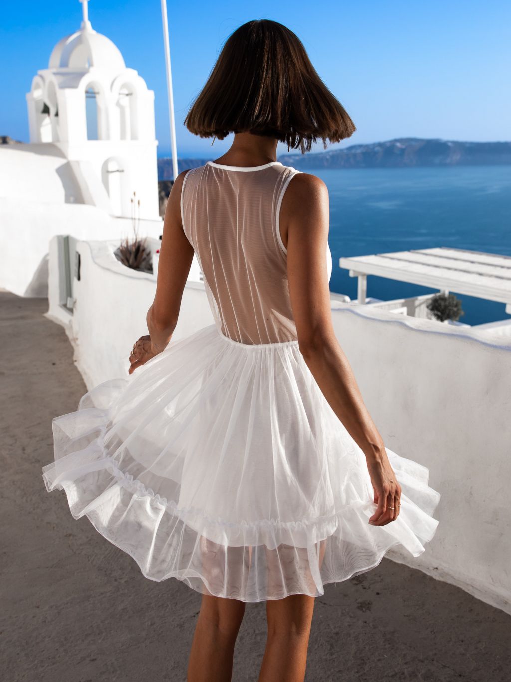 Biele tylové šaty HANNY s čipkou
