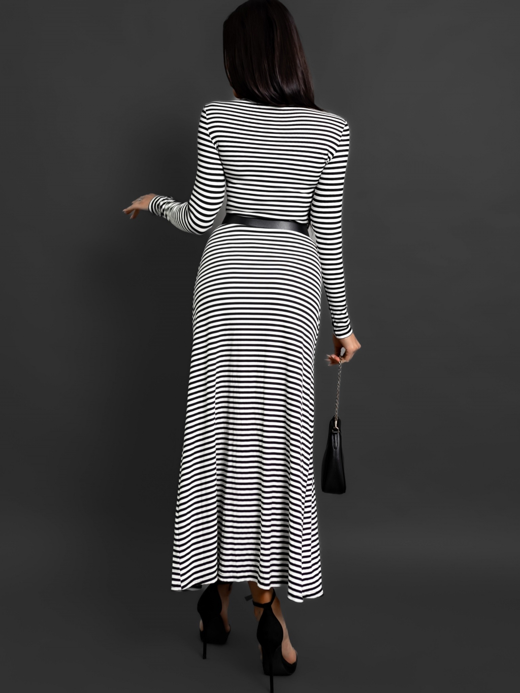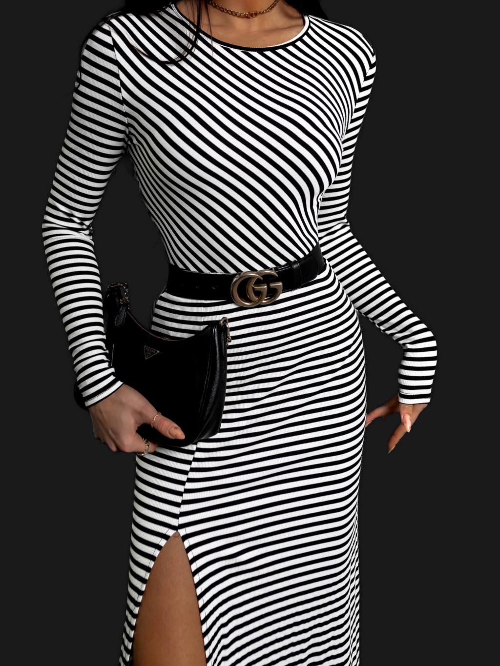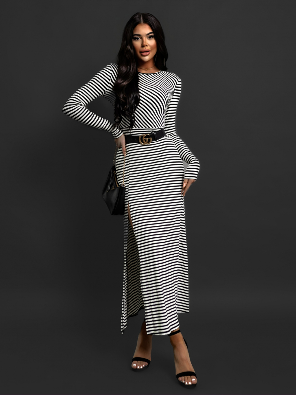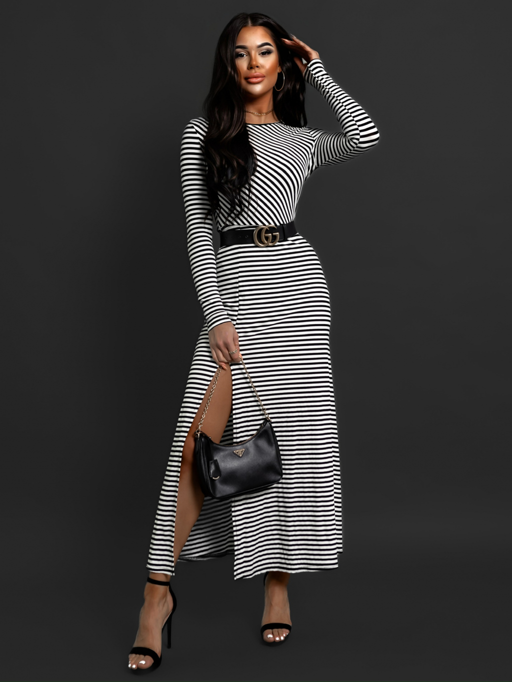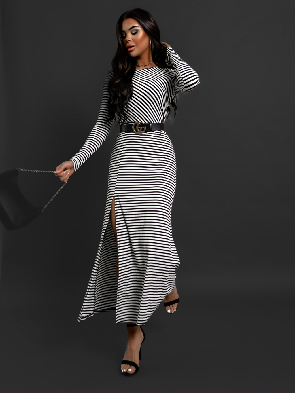 Bieločierne dlhé šaty BINGOL s rázporkom