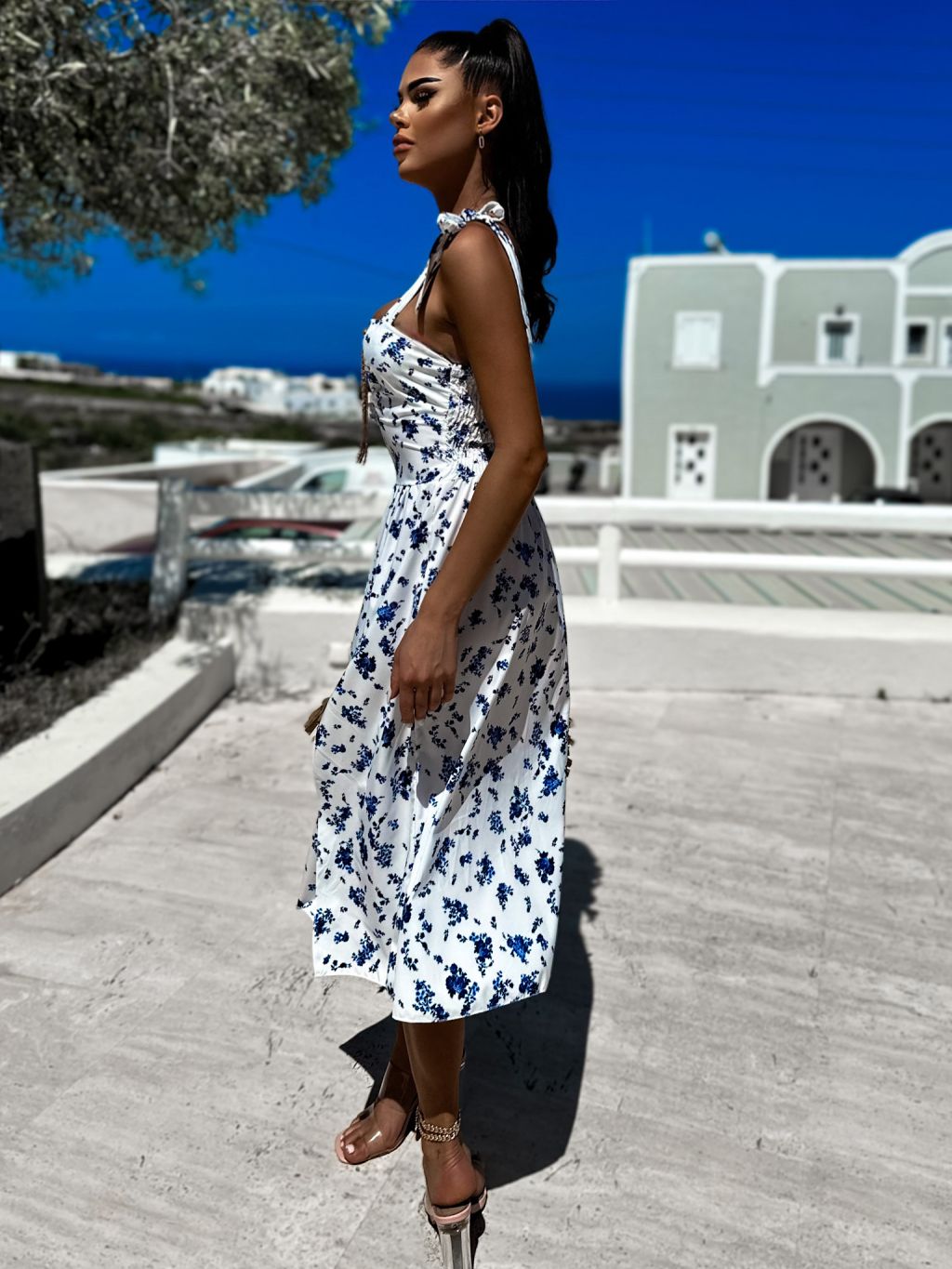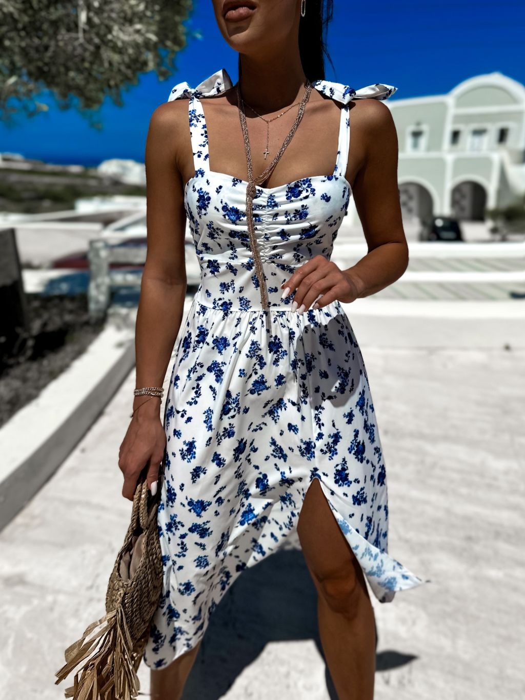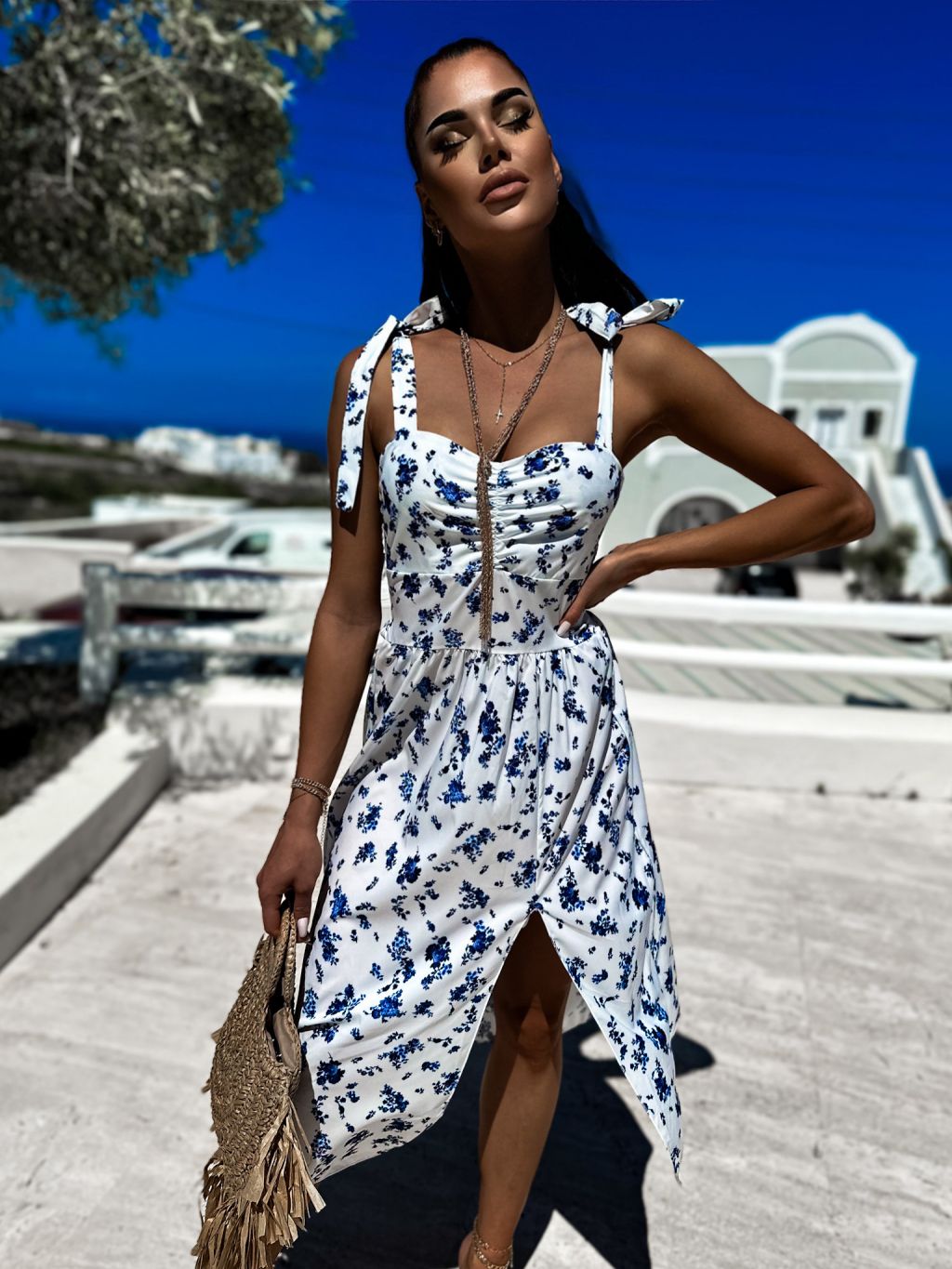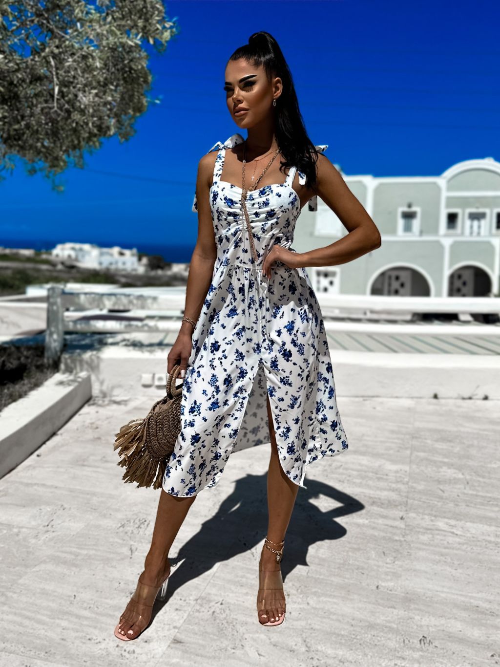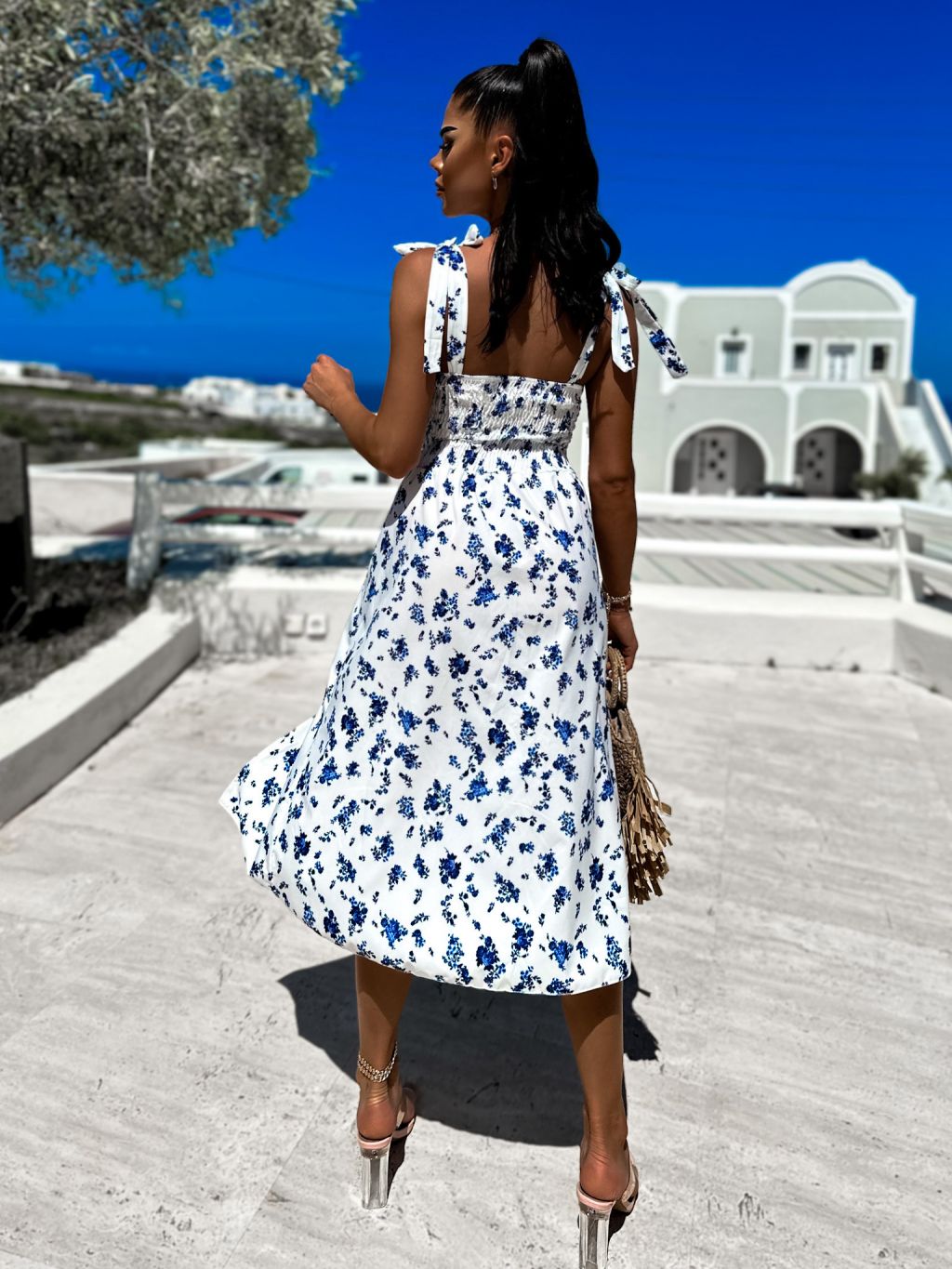 Bielomodré elegantné šaty FORSYT s kvetmi