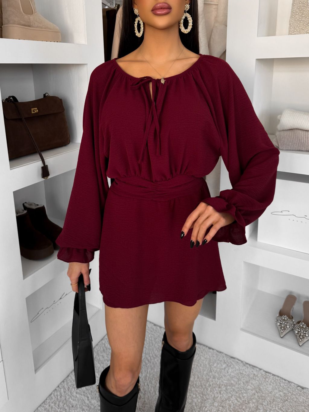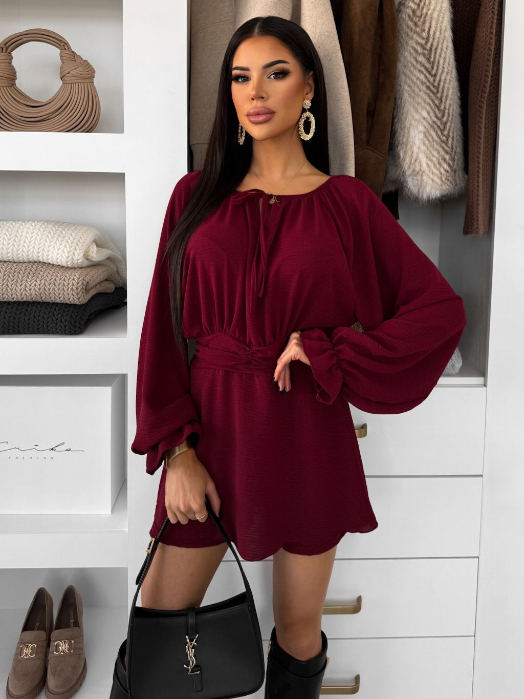 Bordó elegantné šaty AVROI s kraťasmi