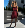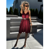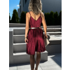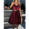 Bordó lesklé plisované šaty CLAURA so zlatým pásikom