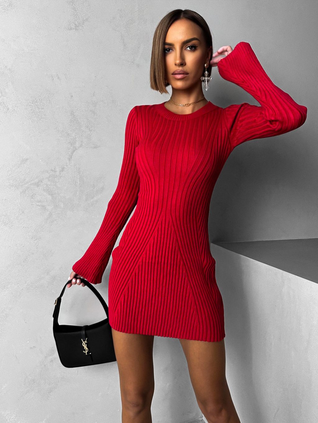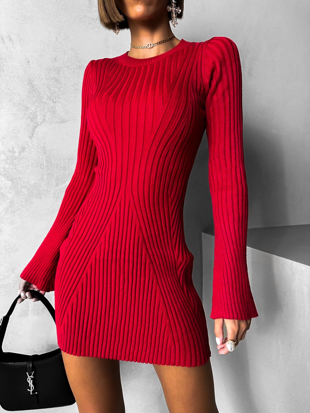Červené áčkové šaty MILER s dlhým rukávom