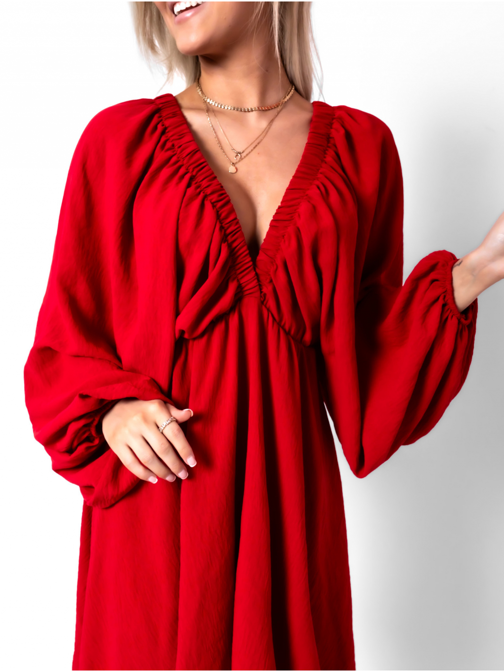 Červené boho šaty RANGE s výstrihom do V