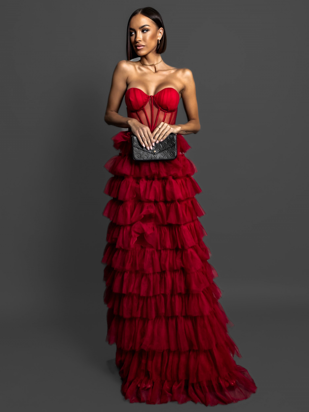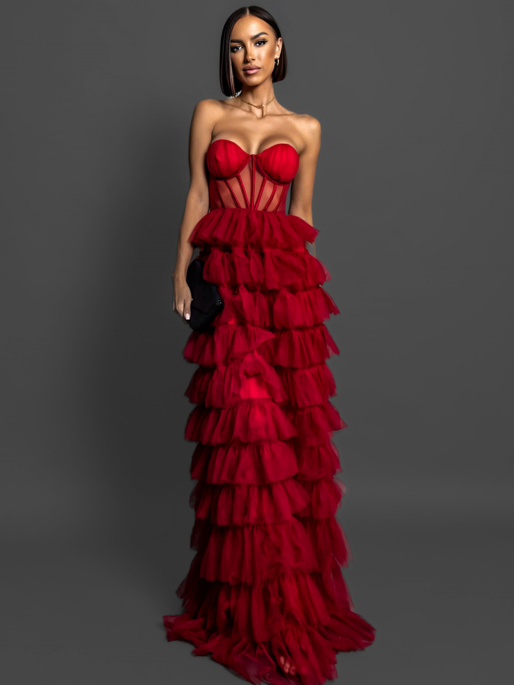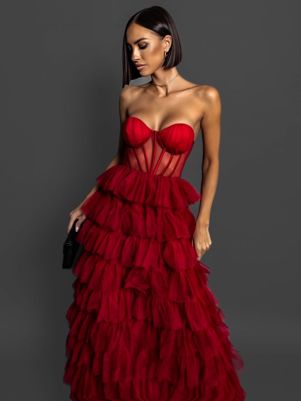 Červené korzetové šaty ARIADNA s volánikmi