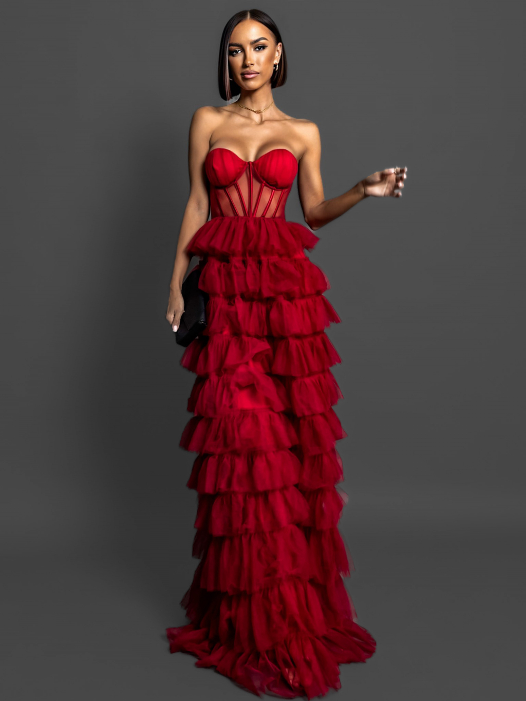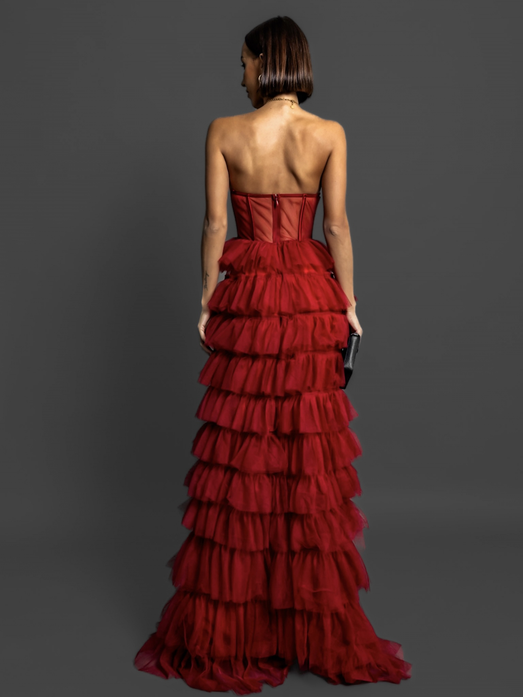 Červené korzetové šaty ARIADNA s volánikmi