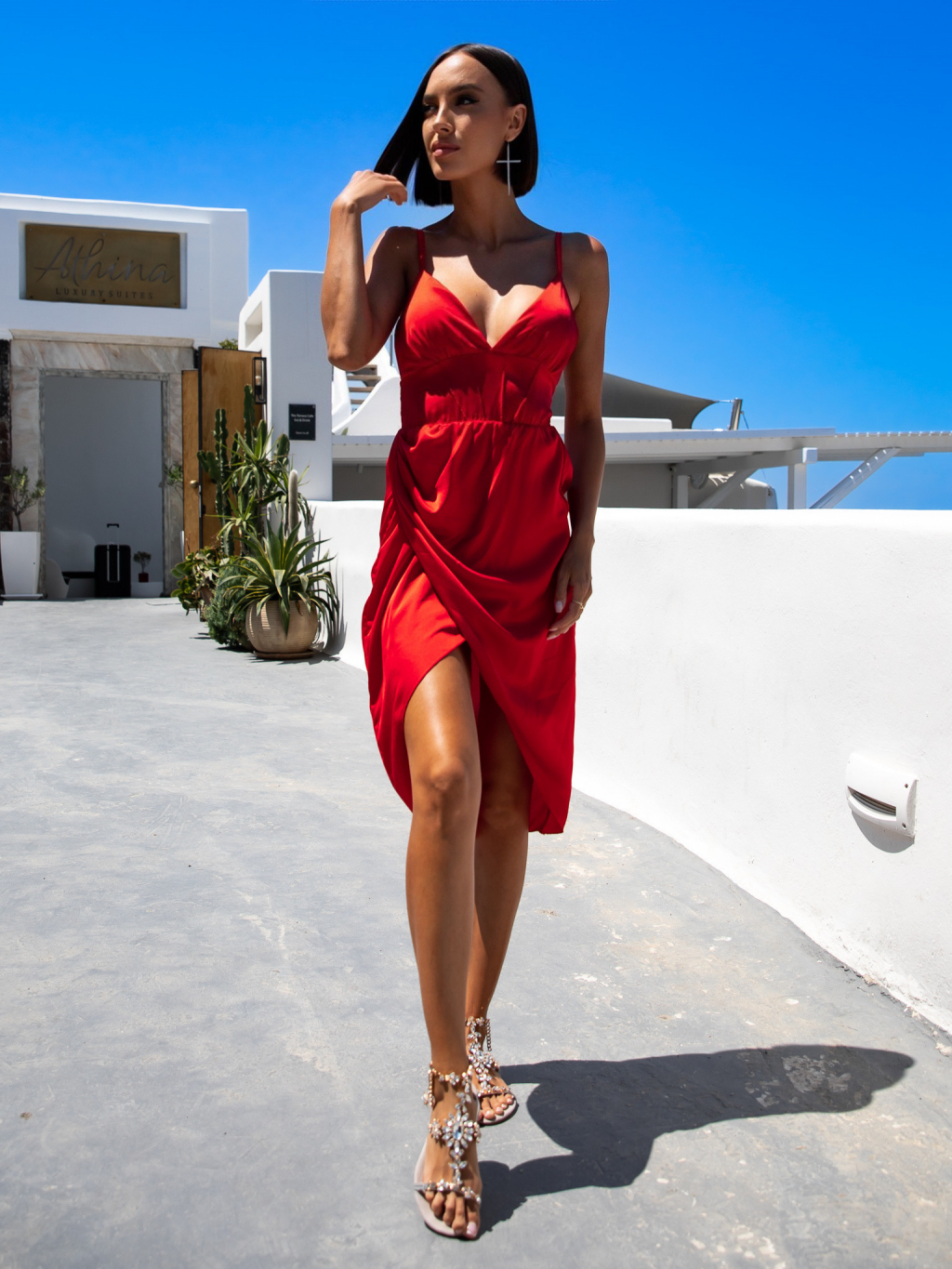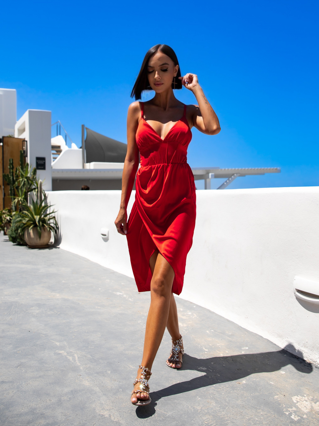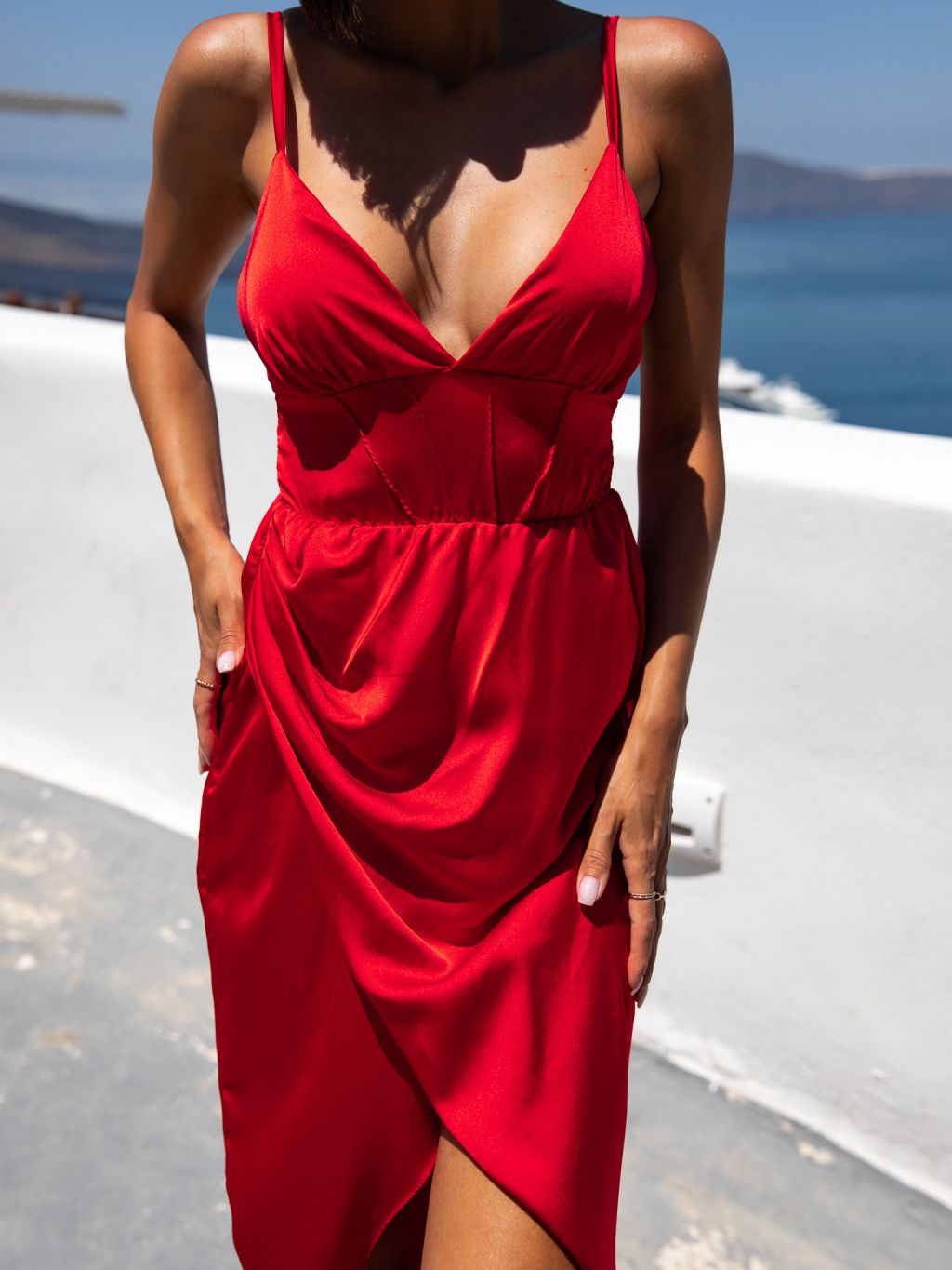 Červené lesklé elegantní šaty KEIRIE