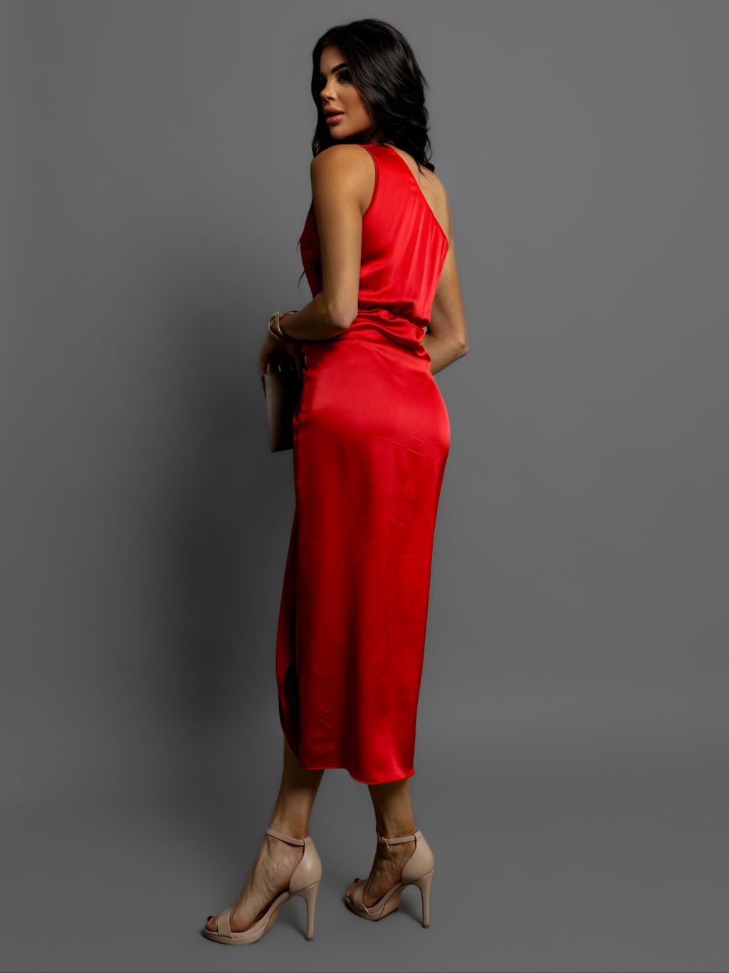 Červené lesklé elegantné šaty LIBIOSI s uzlom