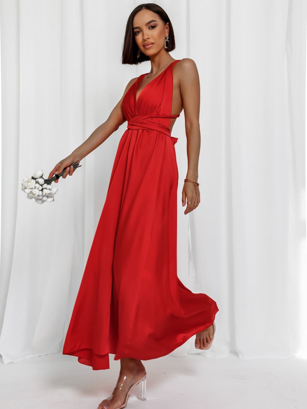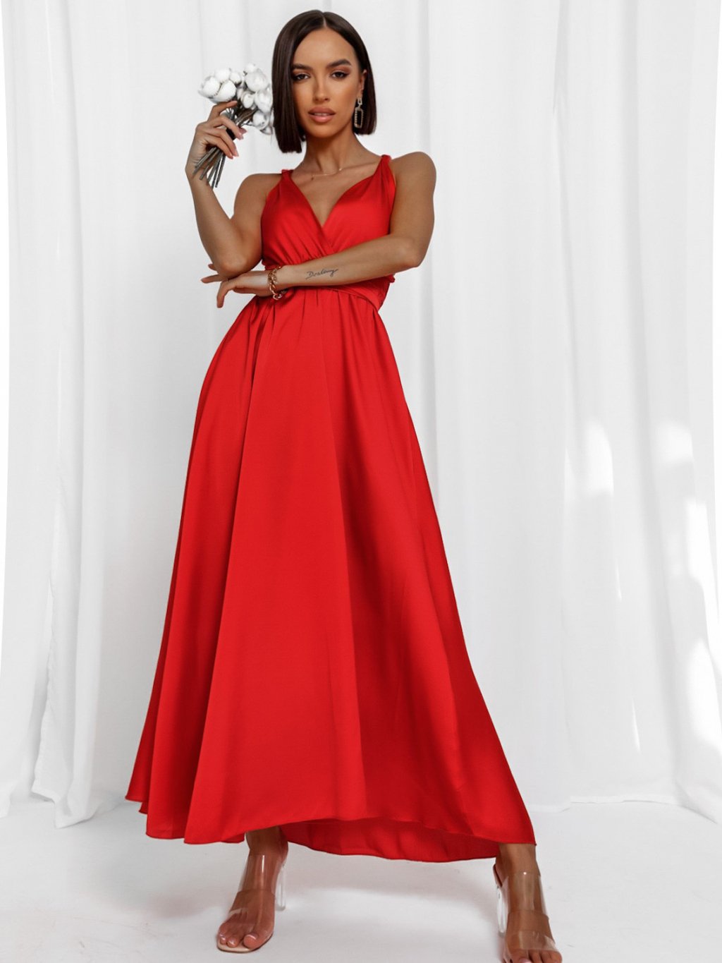 Červené lesklé šaty VALERDY s variabilním vázáním / bez rozparku