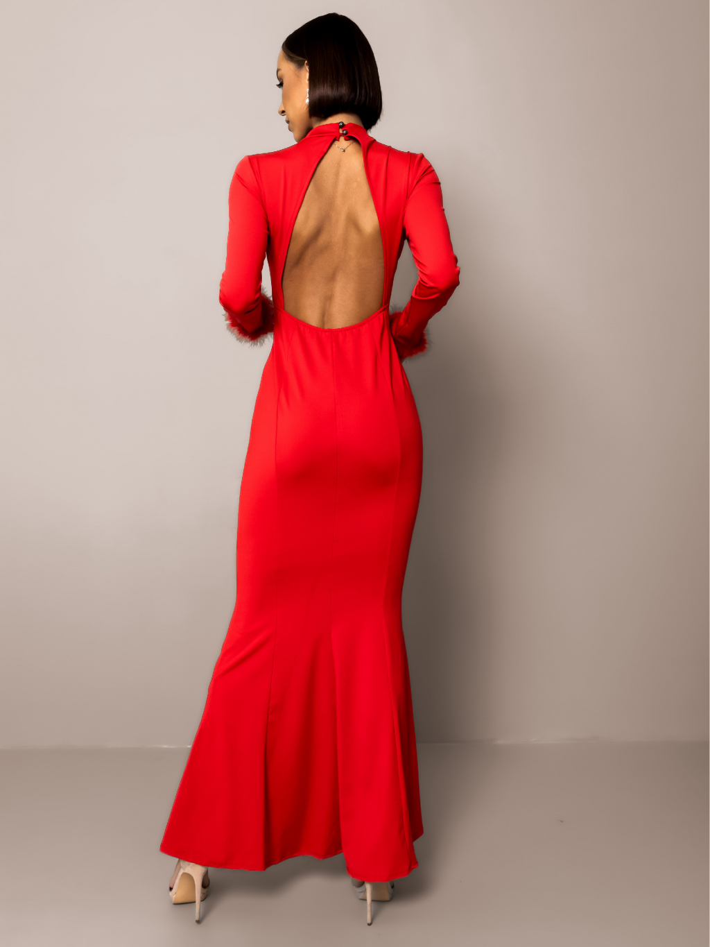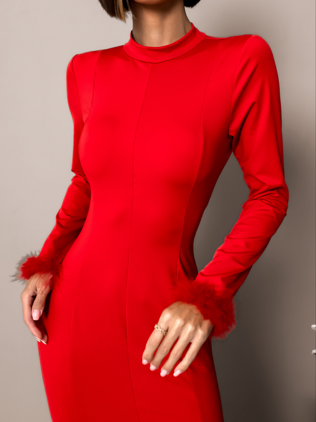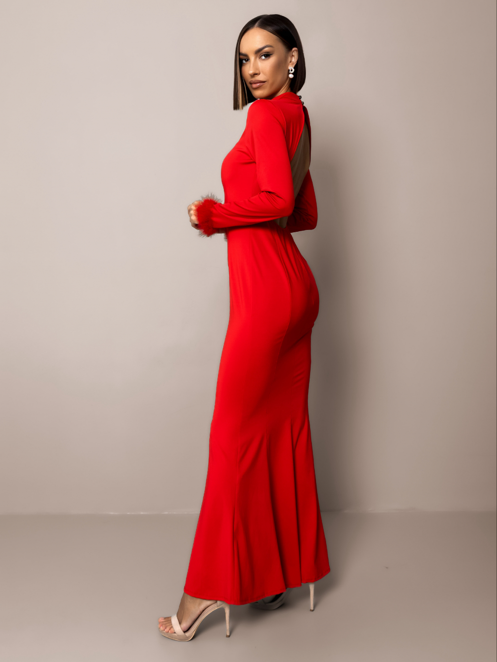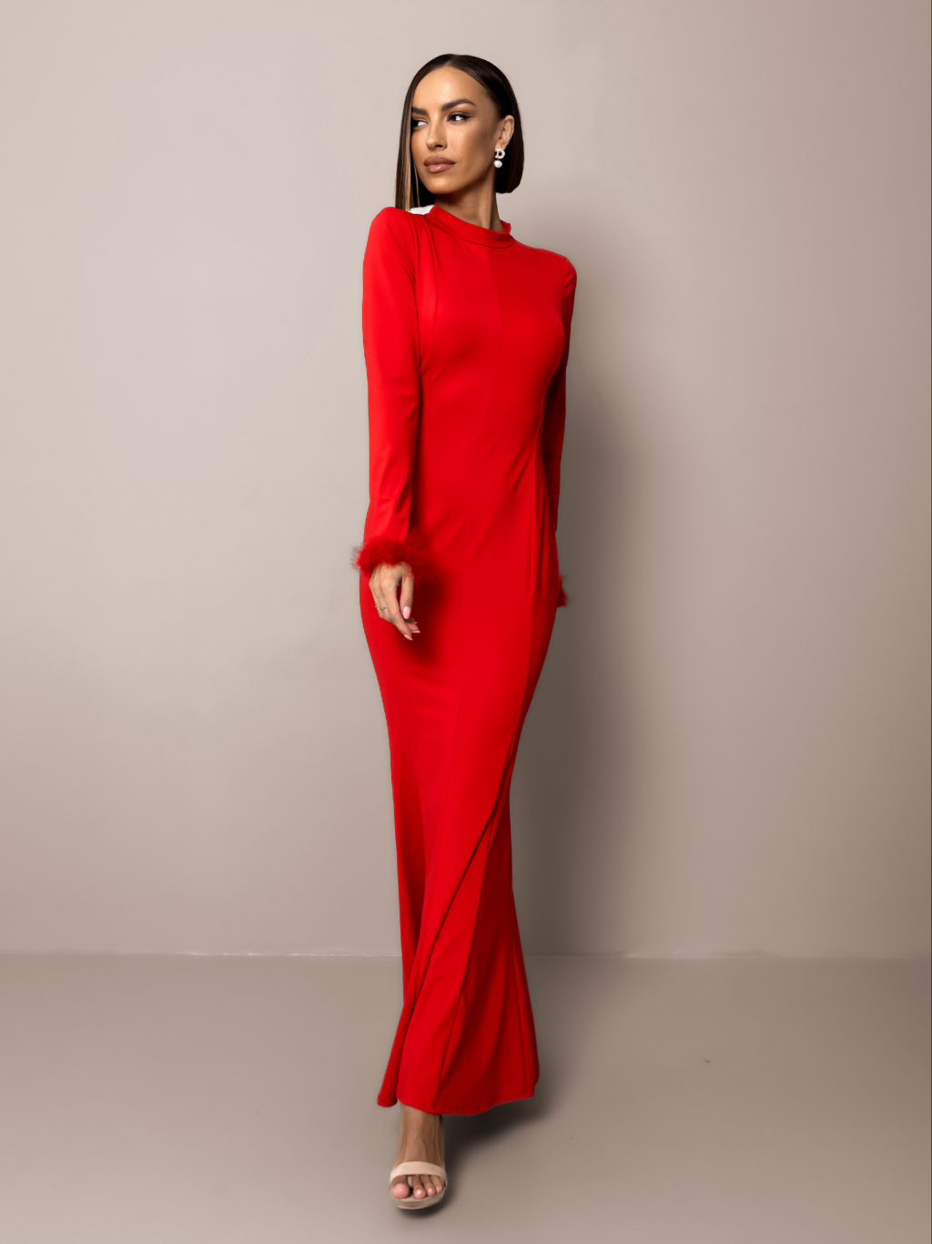 Červené spoločenské šaty ECHIDNA s dlhým rukávom