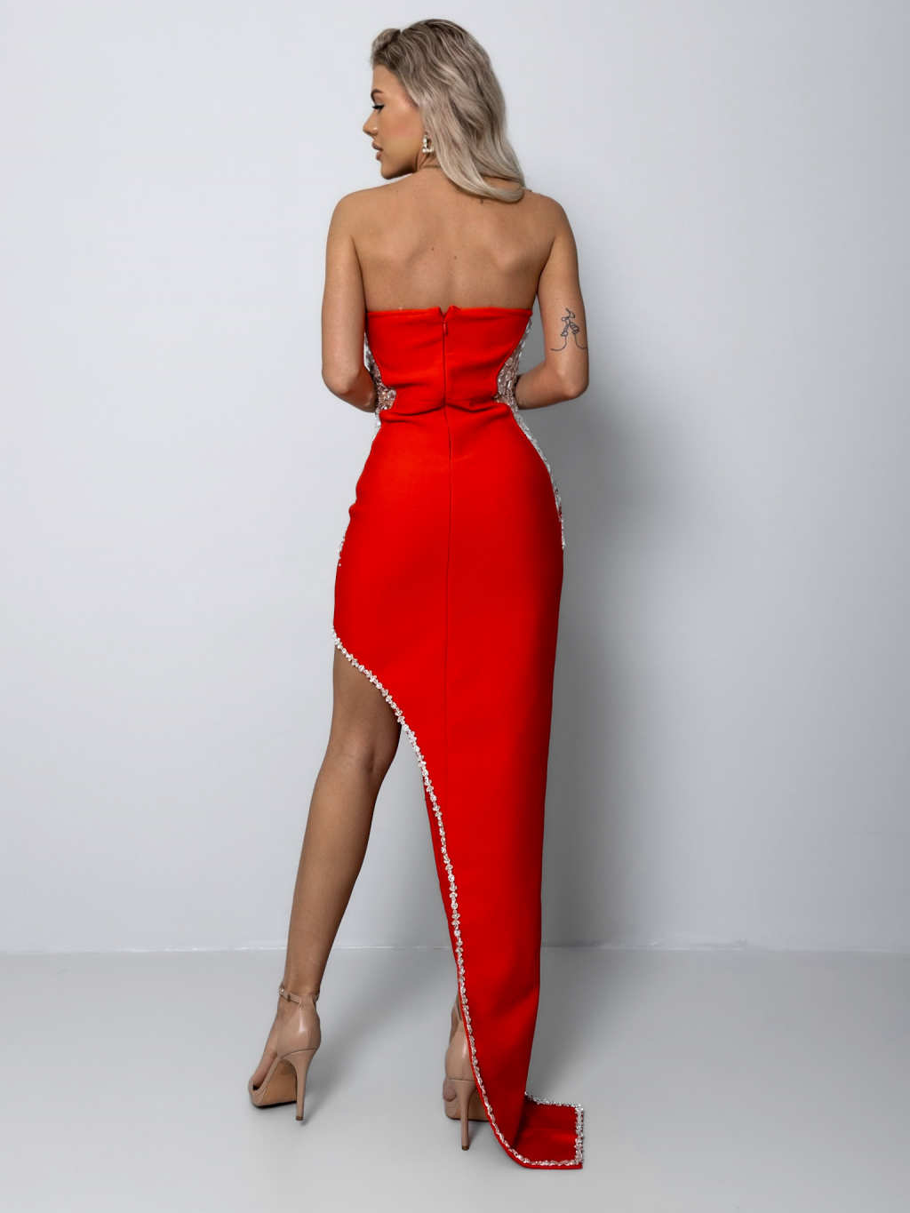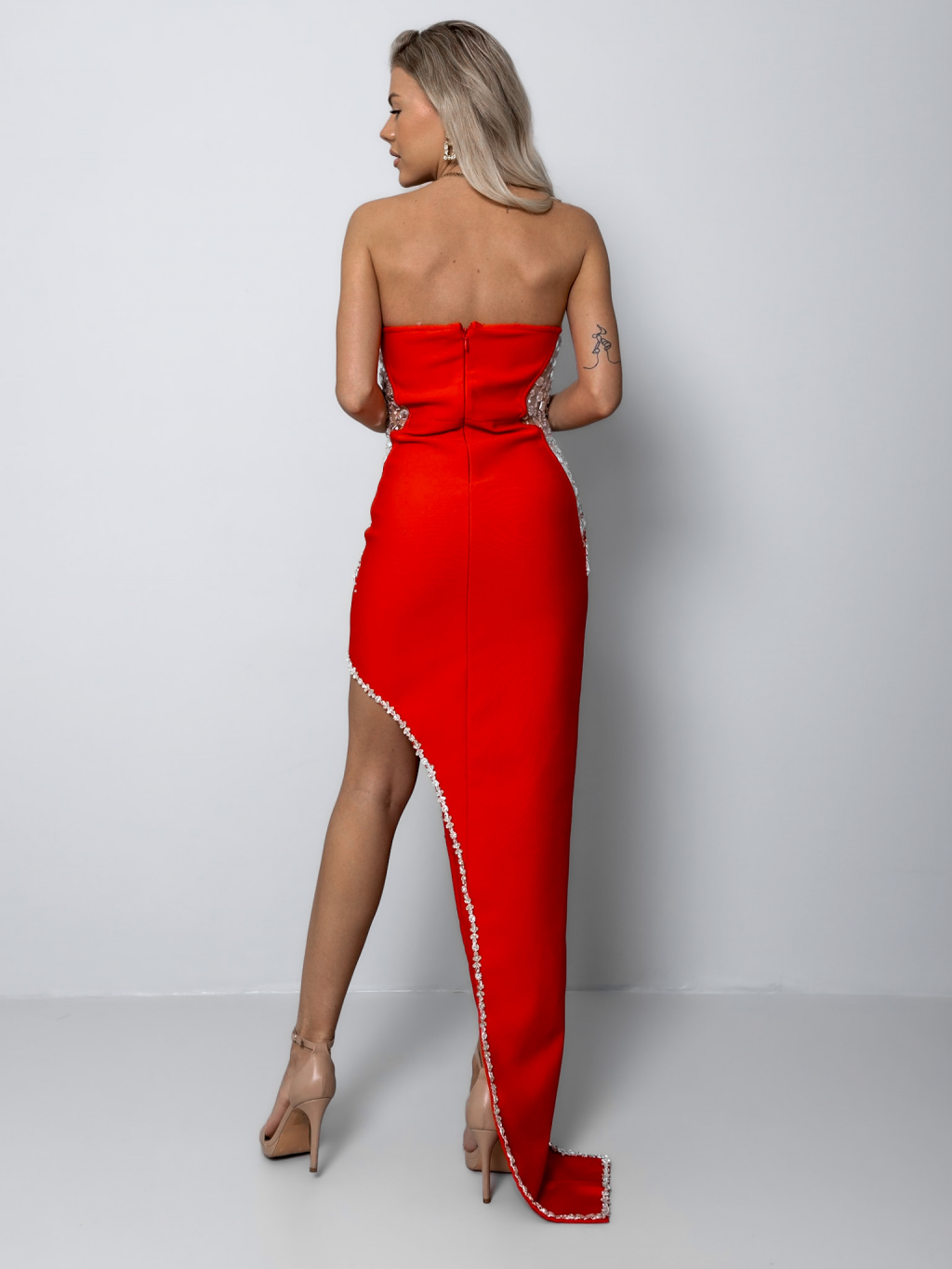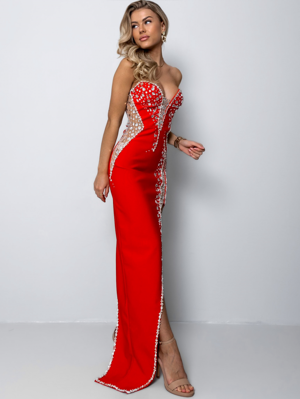 Červené spoločenské šaty HEKUBA s kamienkami