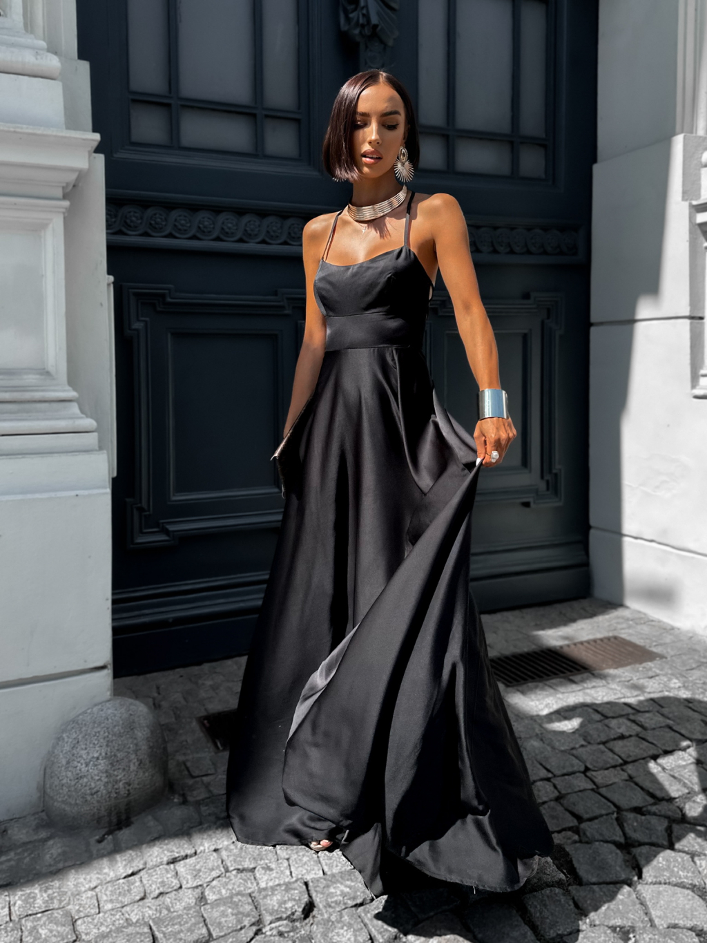 Čierne dlhé elegantné šaty CELLINES