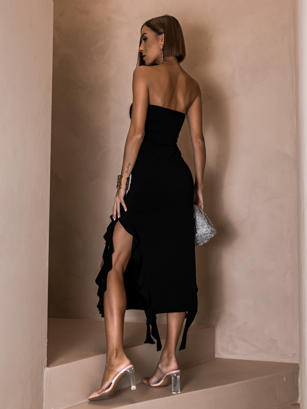 Čierne dlhé elegantné šaty RAJNERY s volánmi