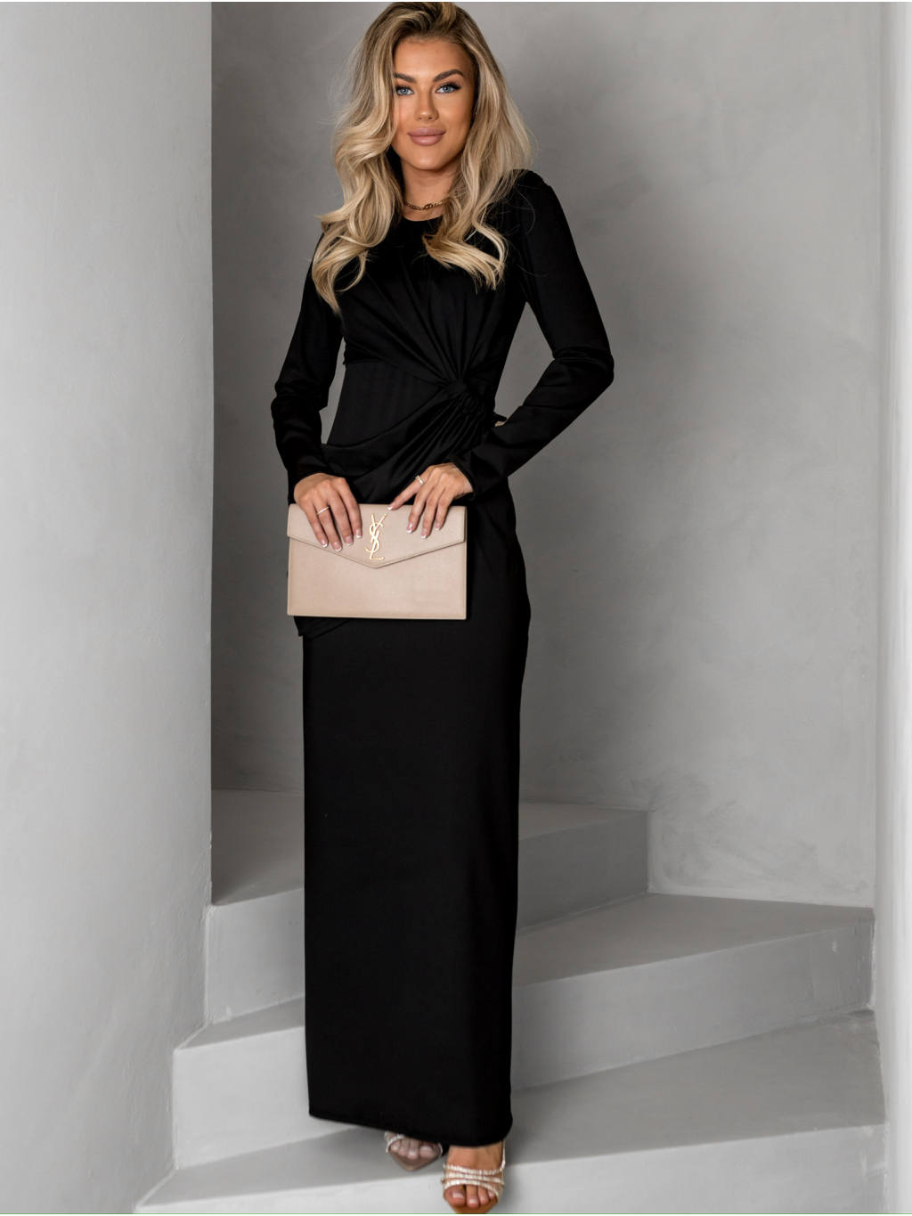 Čierne dlhé elegantné šaty YAXHA s dlhým rukávom
