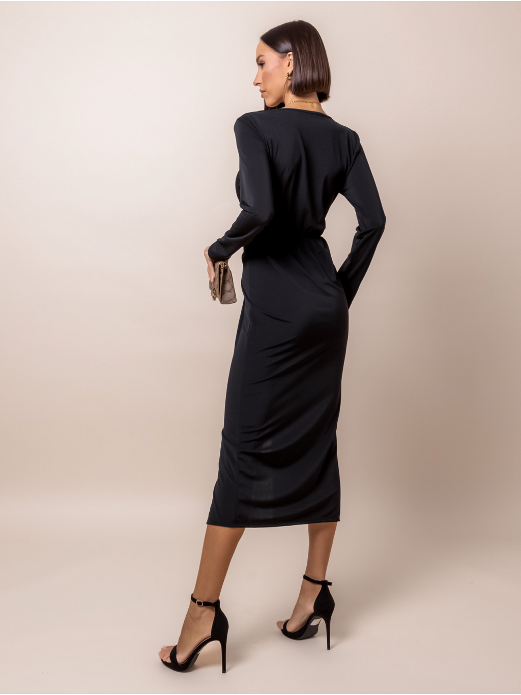 Čierne dlhé šaty SHILOHI s výstrihom do V