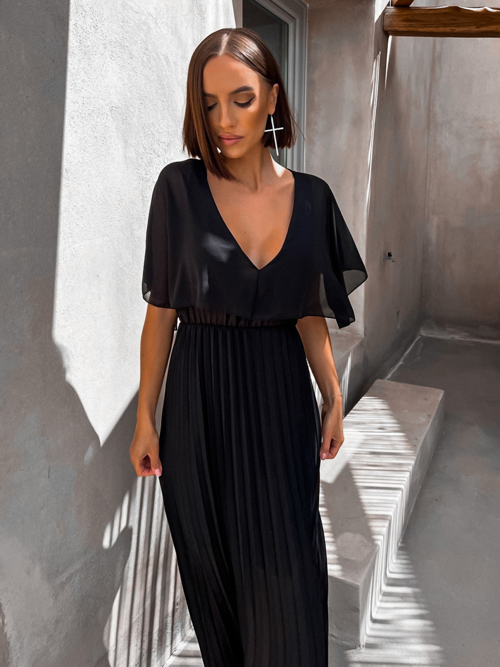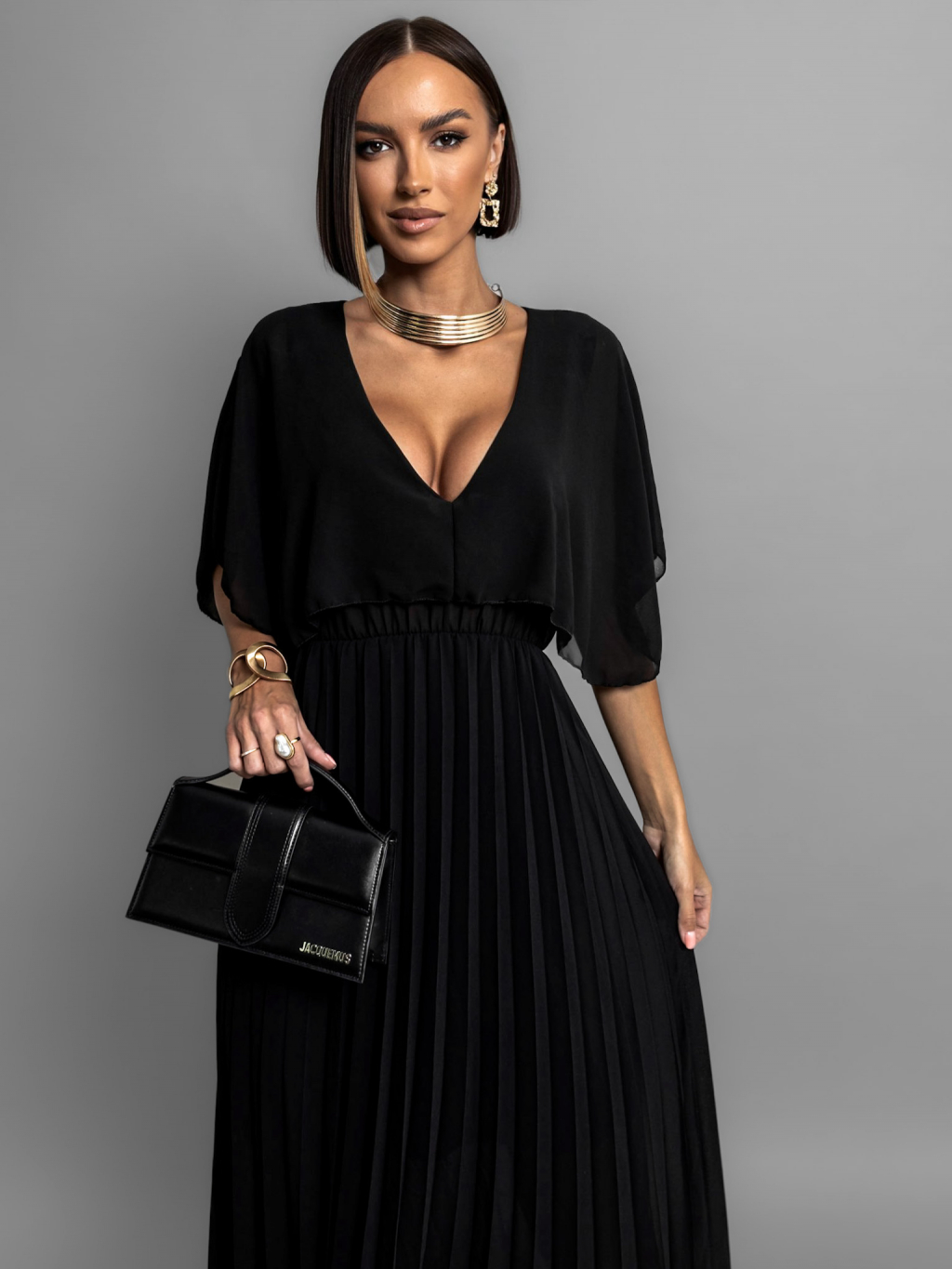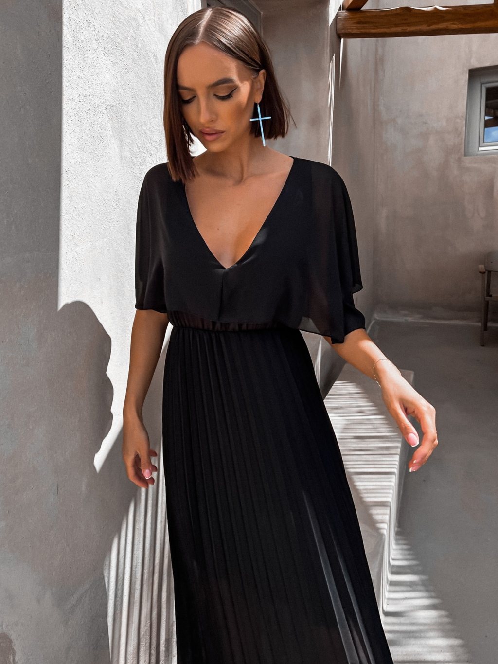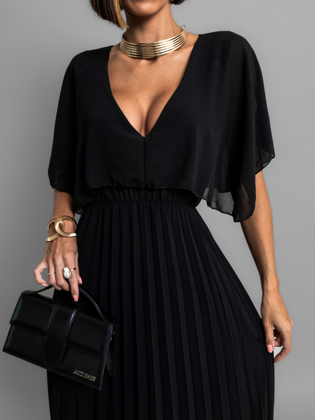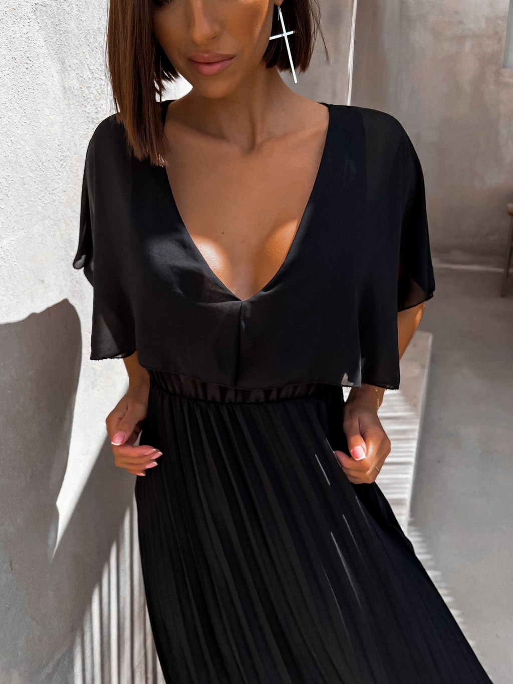 Čierne elegantné šaty PARFOMELLE s výstrihom do V
