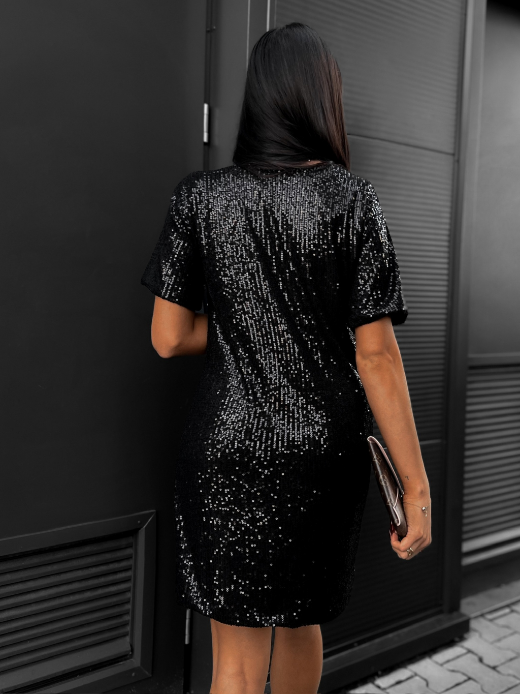 Čierne flitrované šaty NINONE s krátkym rukávom