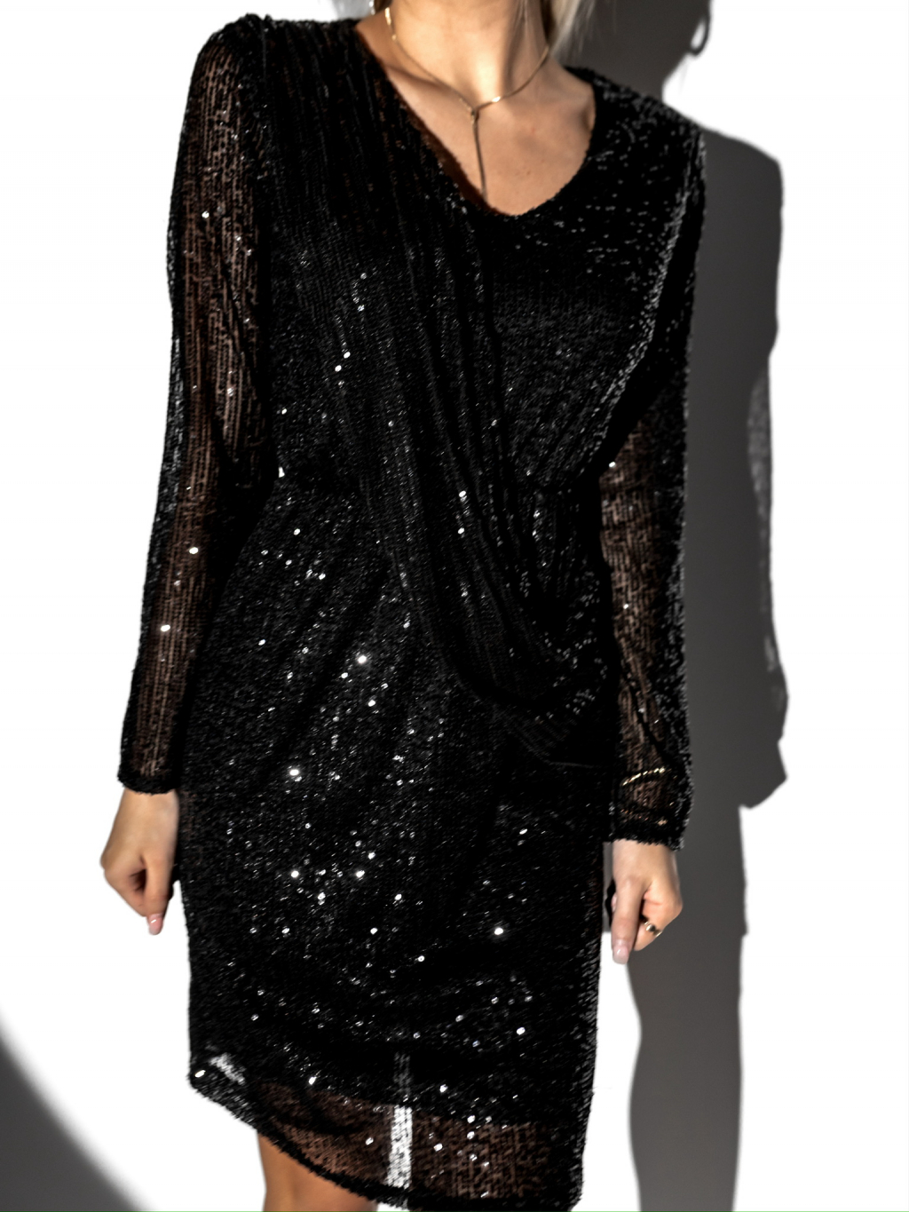 Čierne koktailové šaty EFIALTES s flitrami