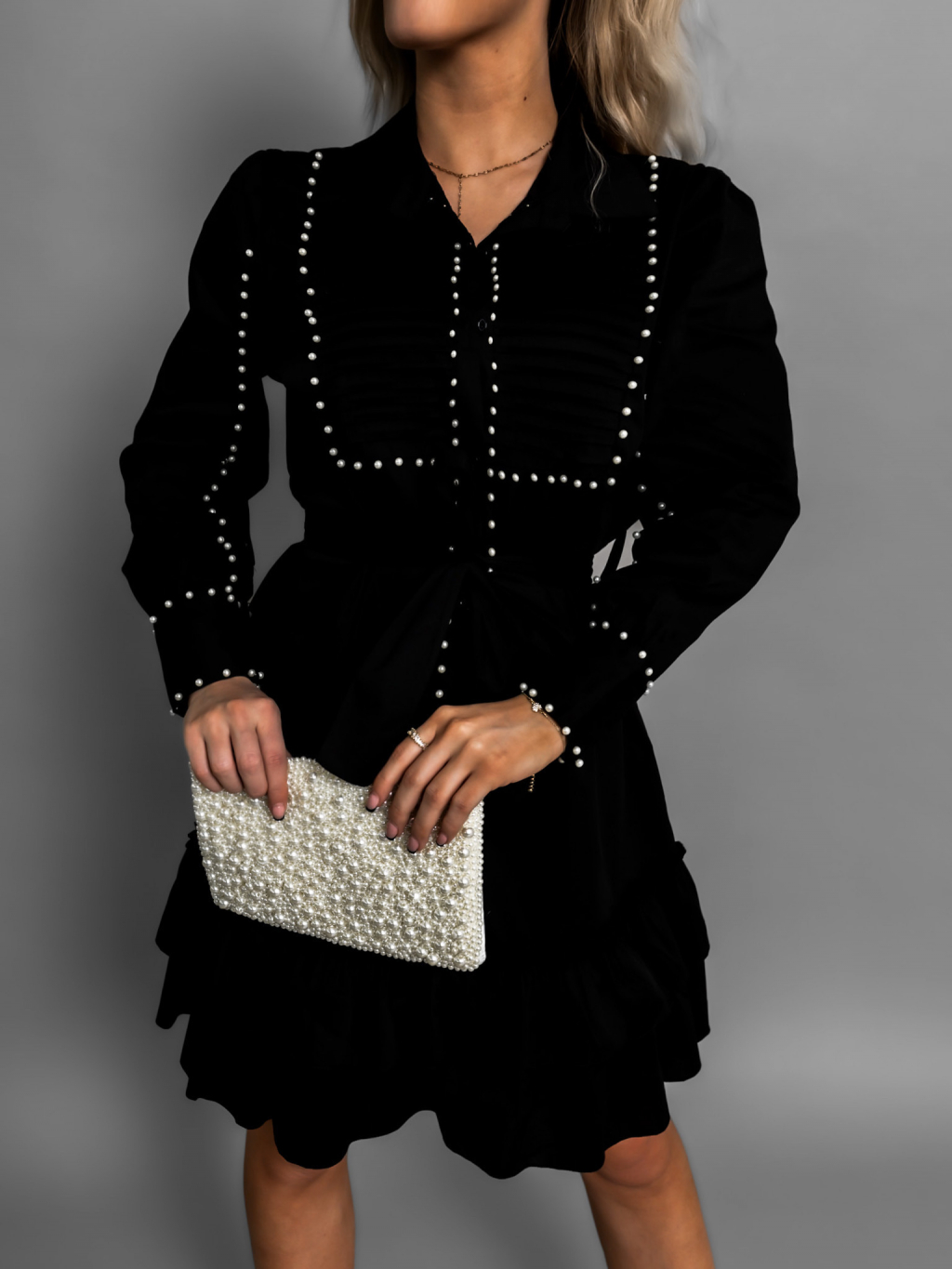 Čierne košeľové šaty MUSTAFA s perličkami 95% bavlna