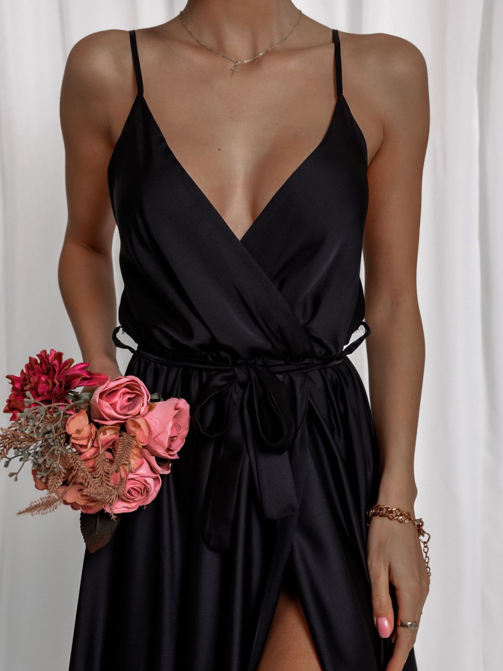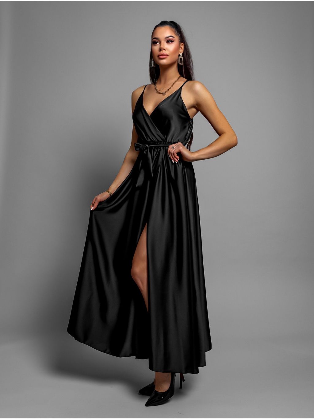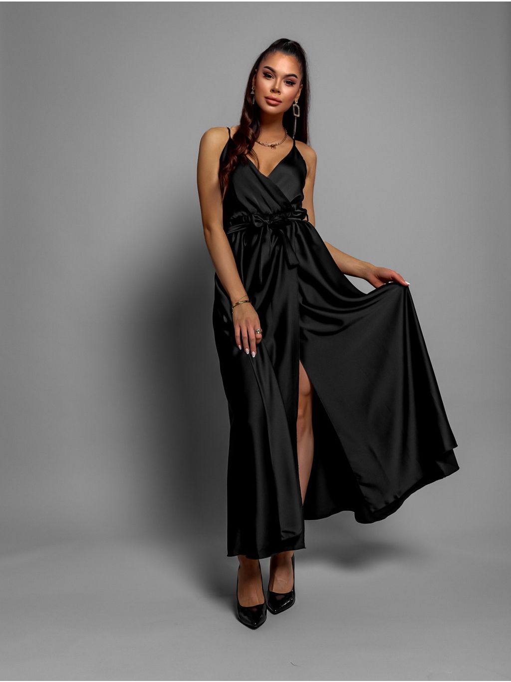 Čierne lesklé dlhé plesové šaty FAIRYTALE pro družičky