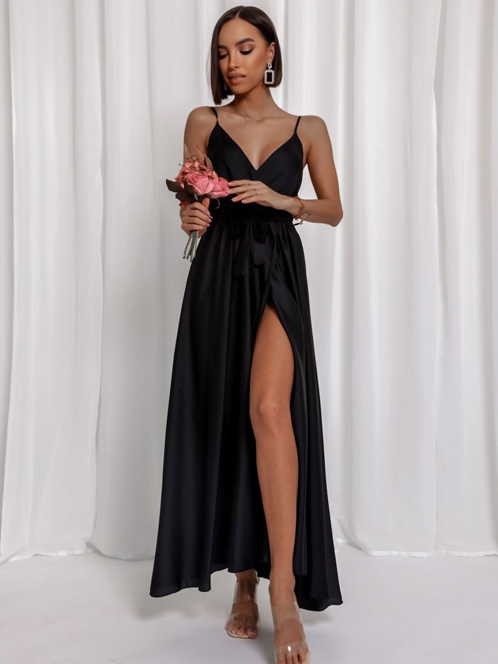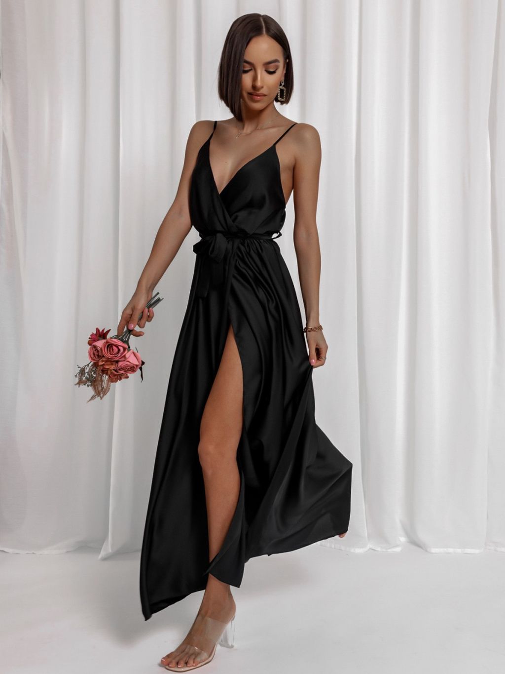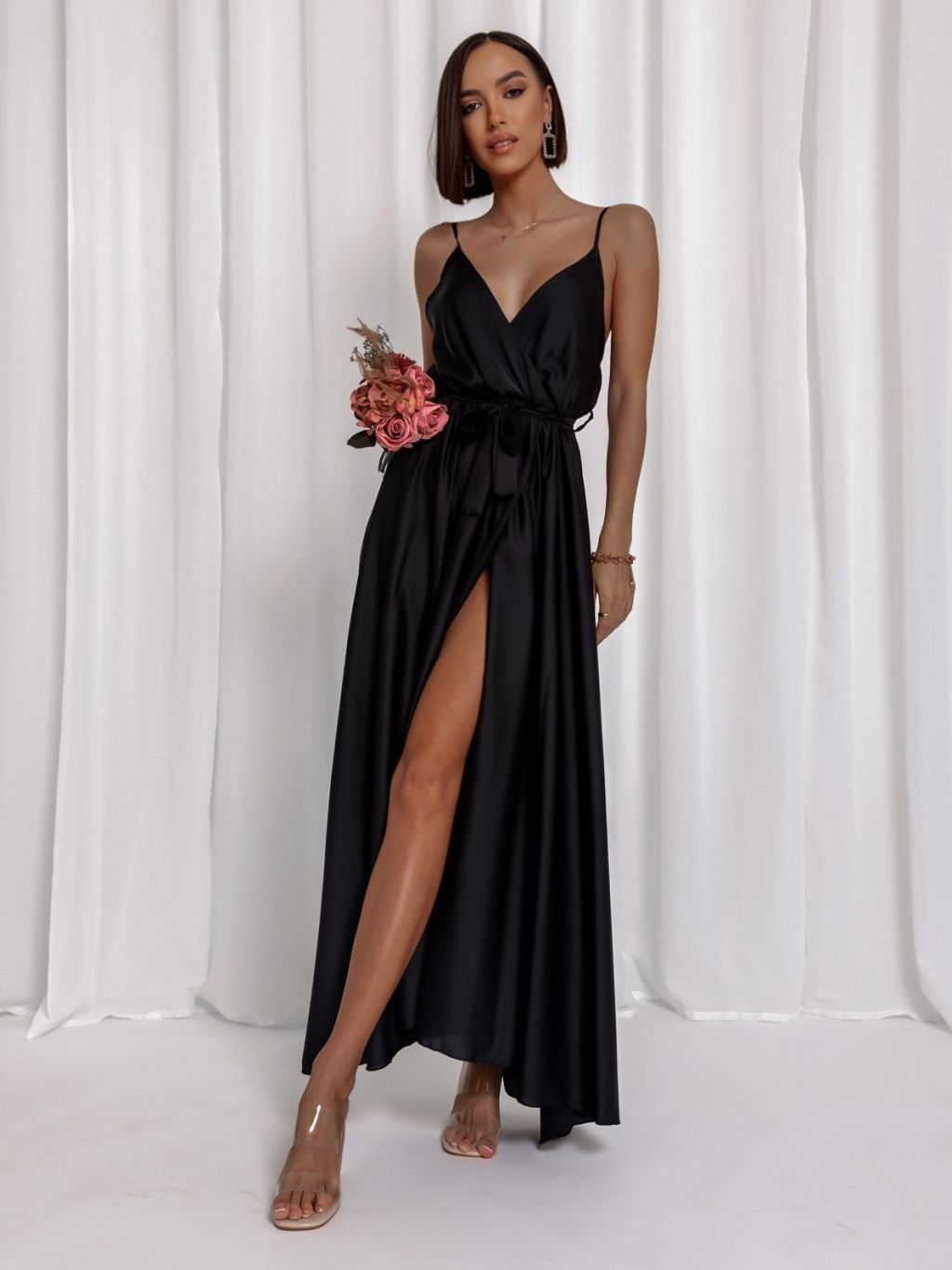 Čierne lesklé dlhé plesové šaty FAIRYTALE pro družičky