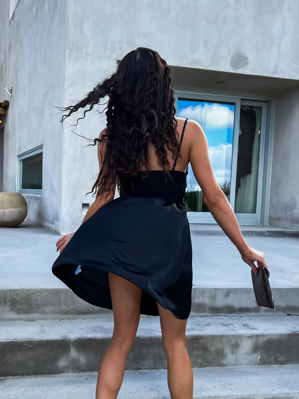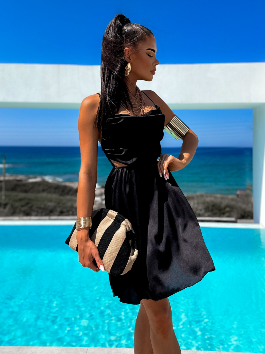 Čierne lesklé elegantné šaty JEWELRY s prestrihmi