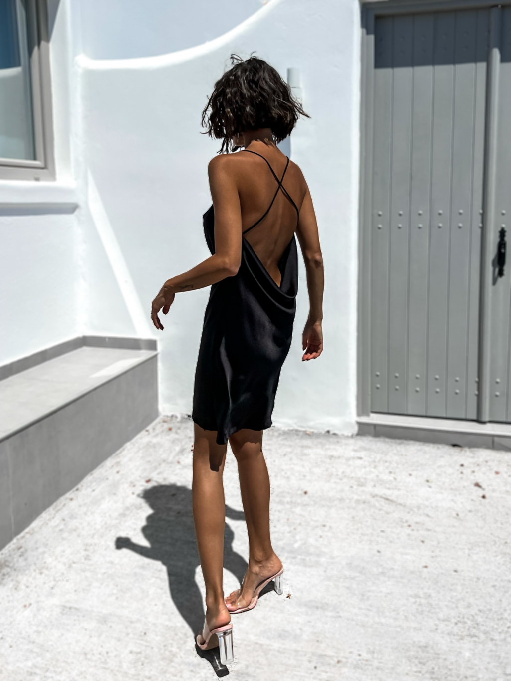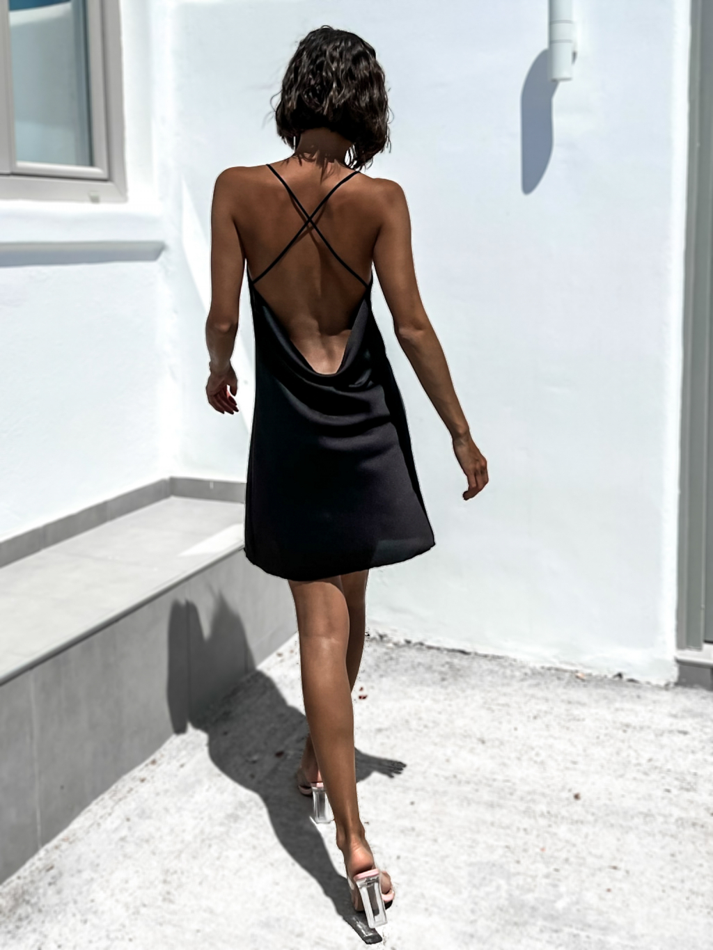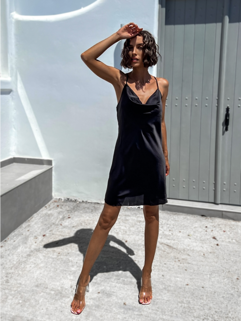 Čierne lesklé šaty IZZY s tenkými ramienkami