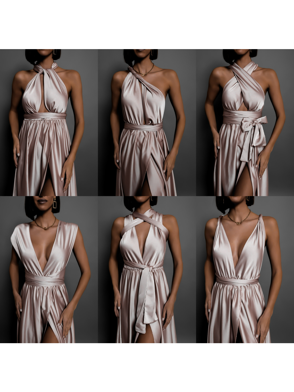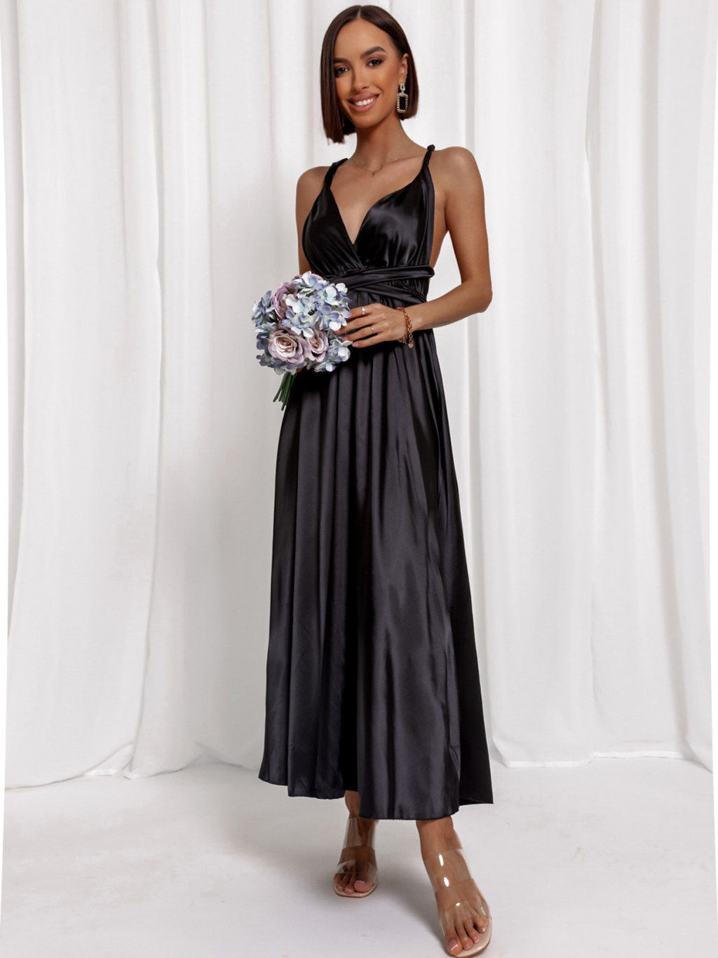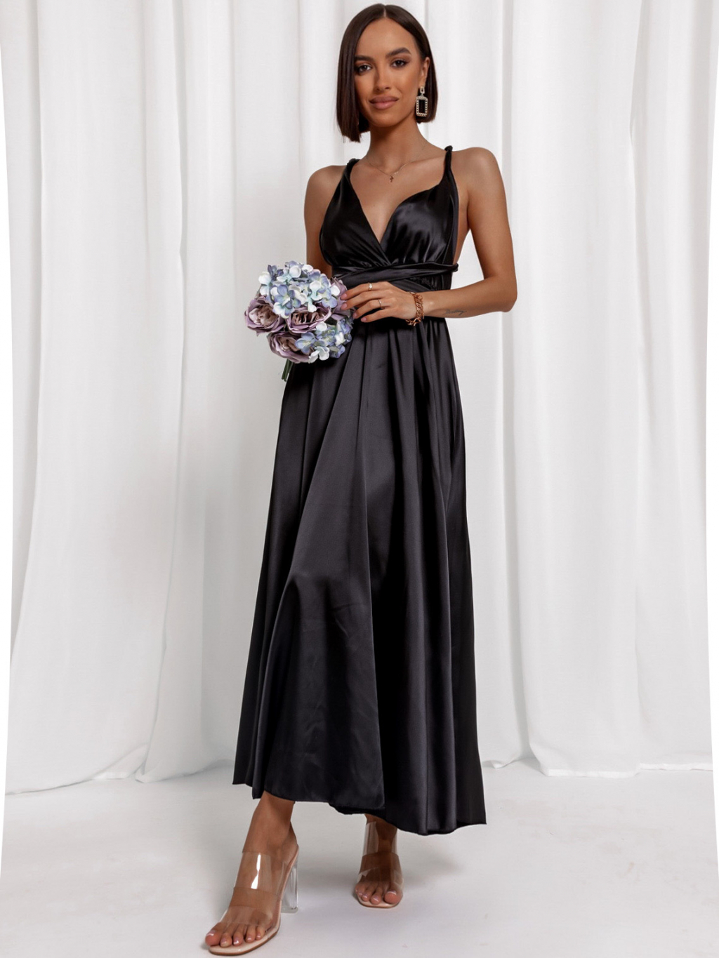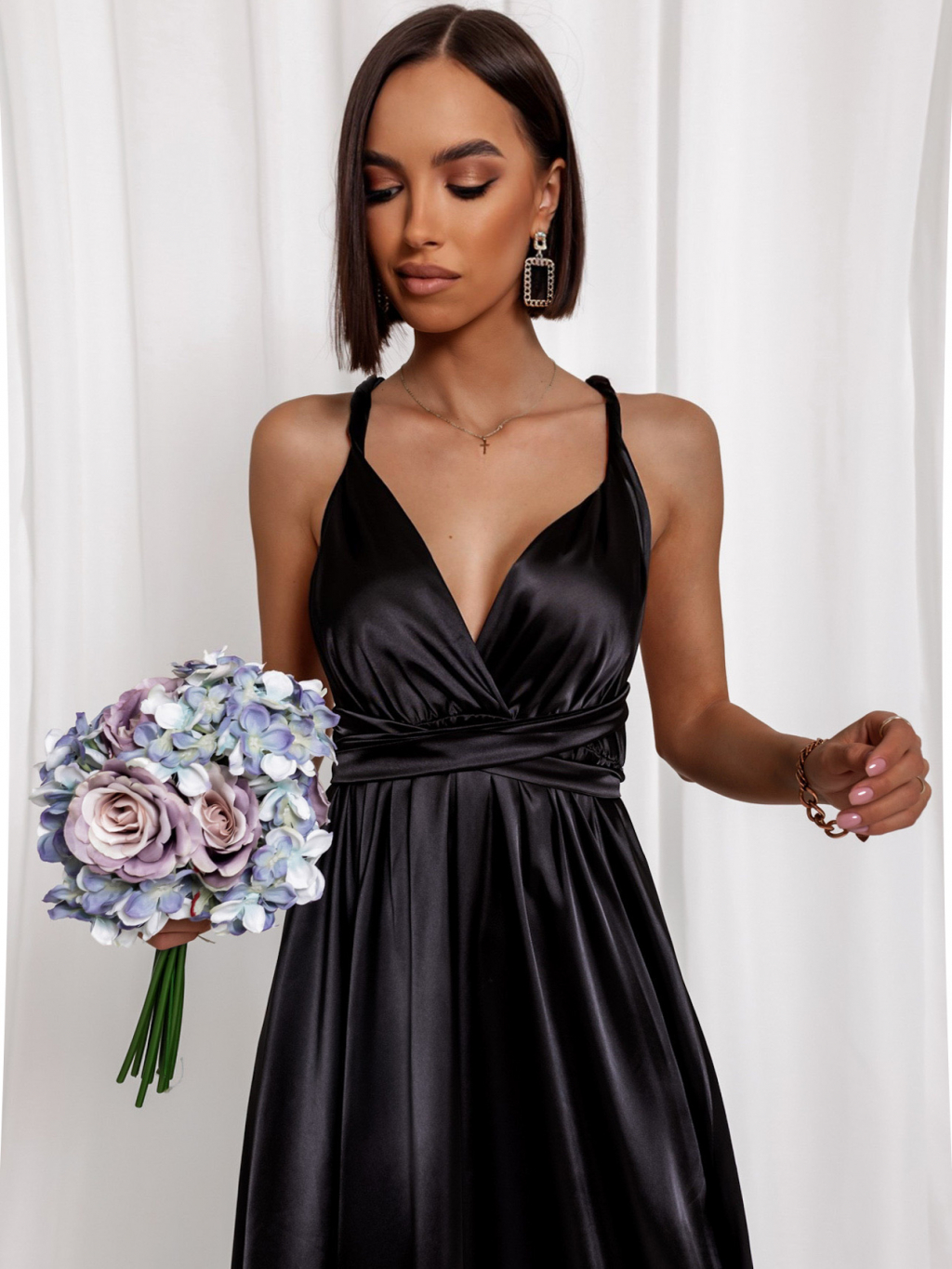 Čierne lesklé šaty VALERDY s variabilným viazaním / bez rázporku