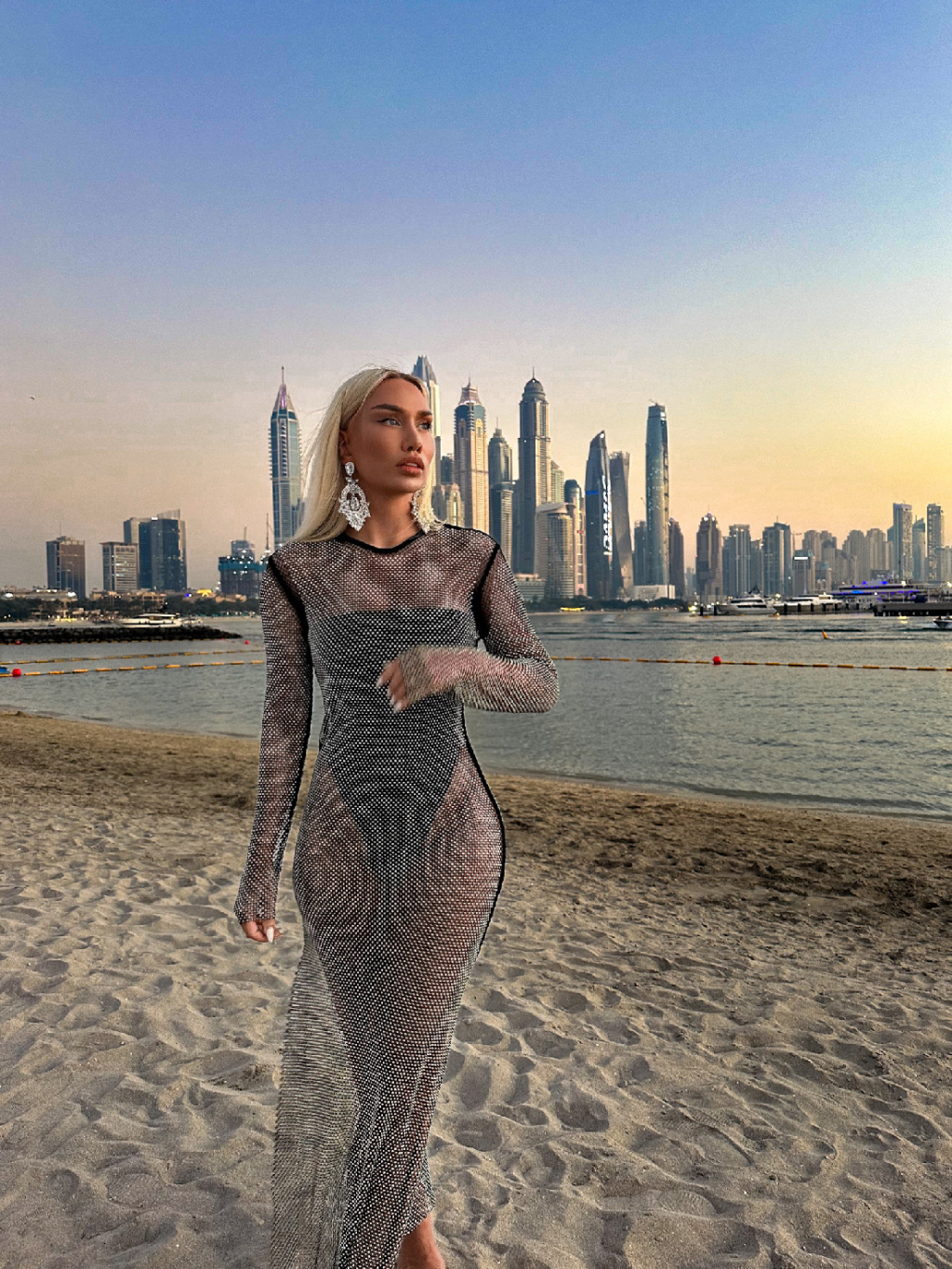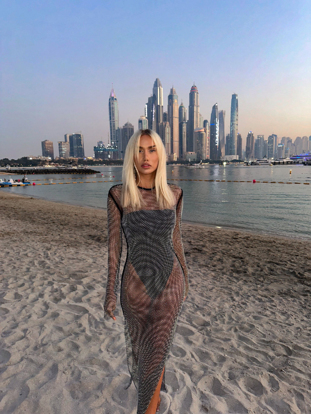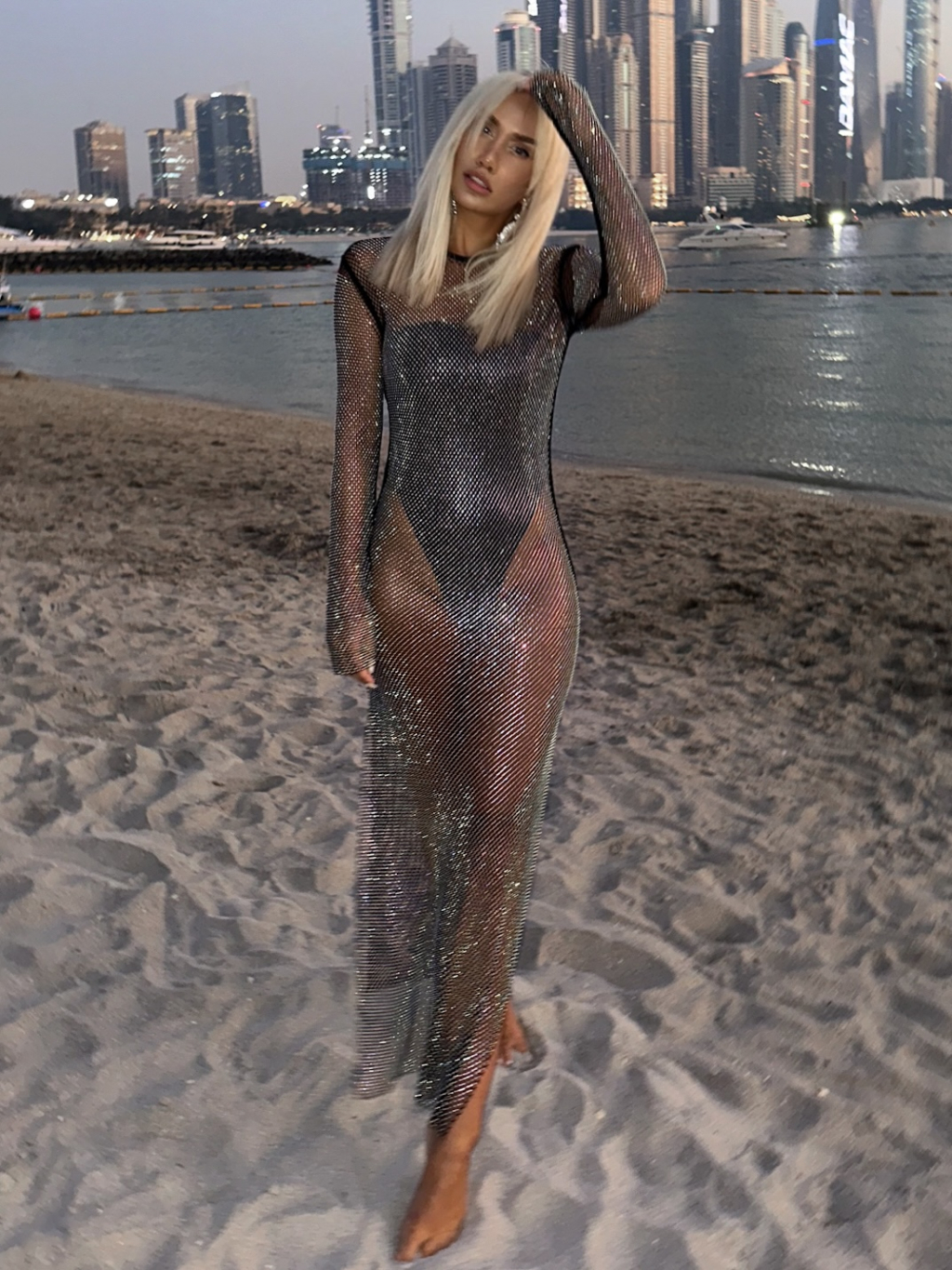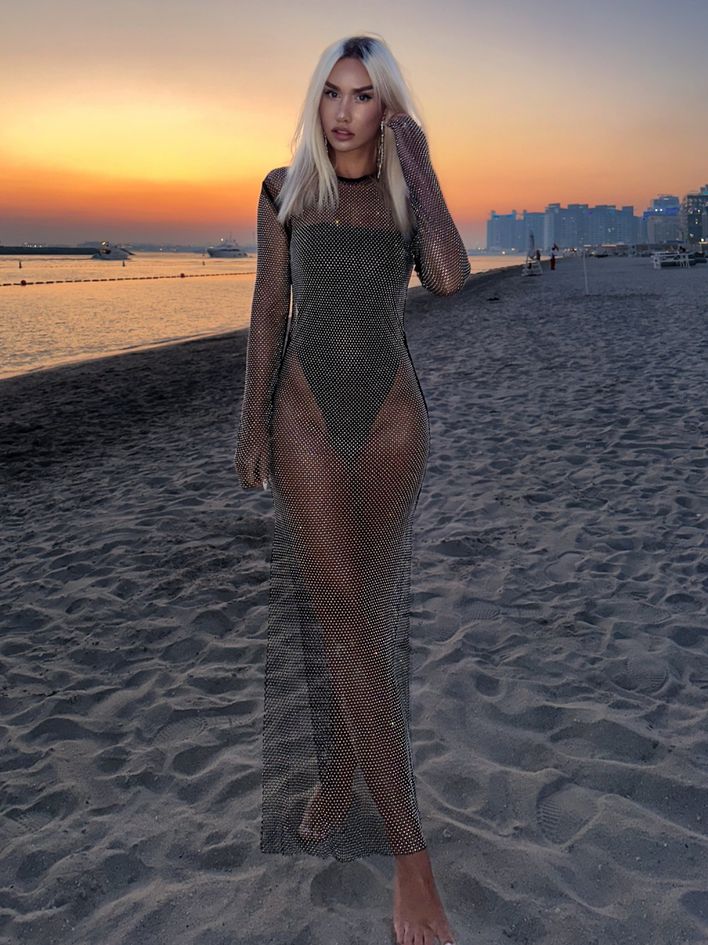 Čierne priesvitné šaty TOBIASI s kamienkami