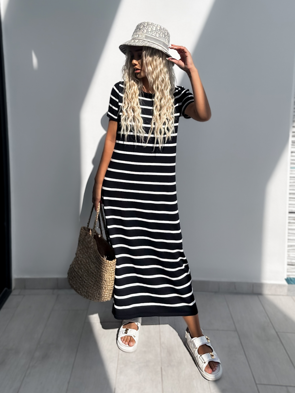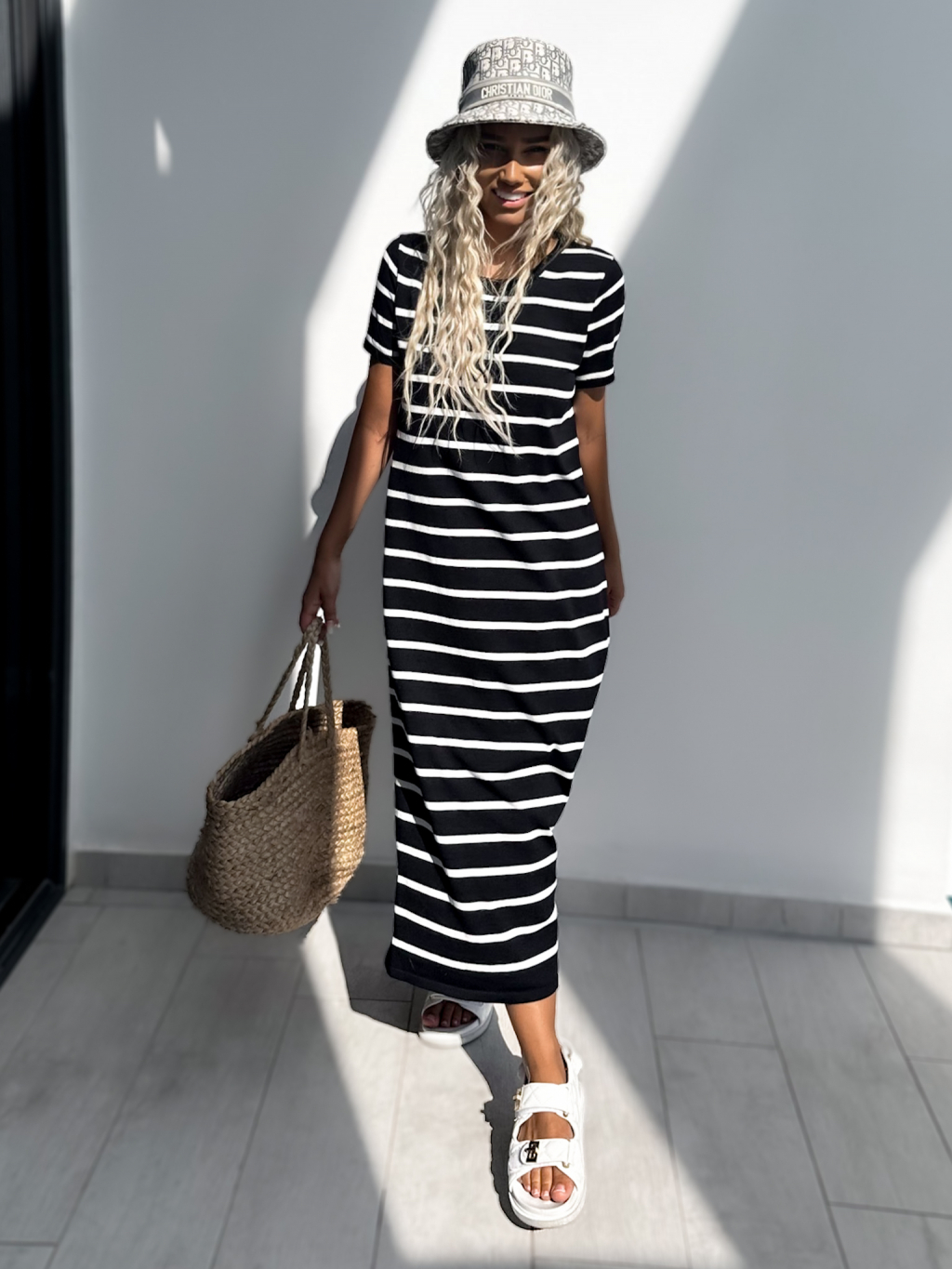 Čierne pruhované oversize šaty FUOLE