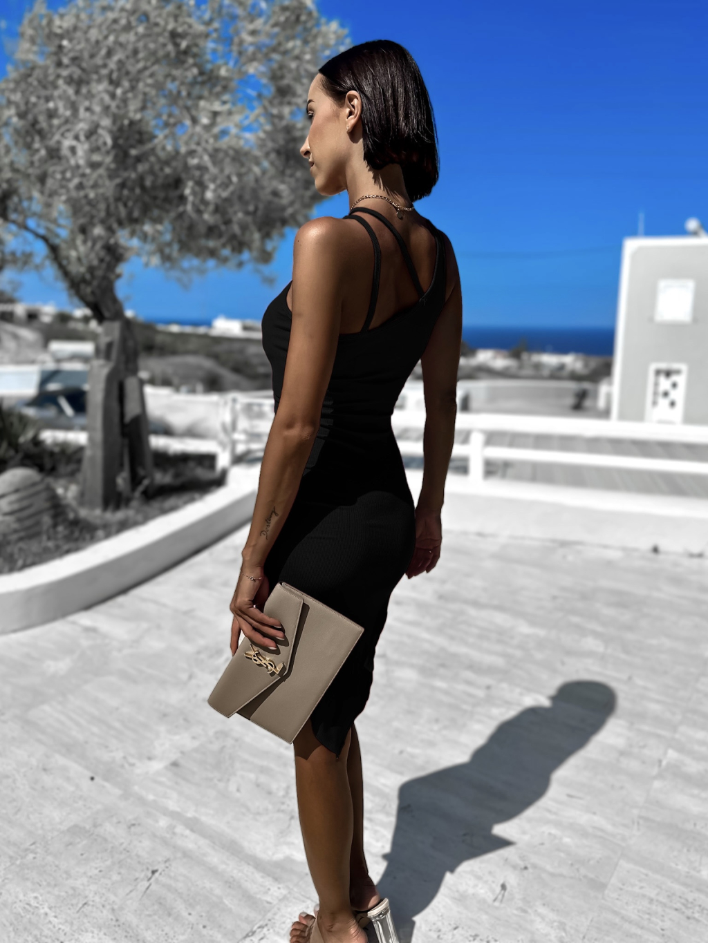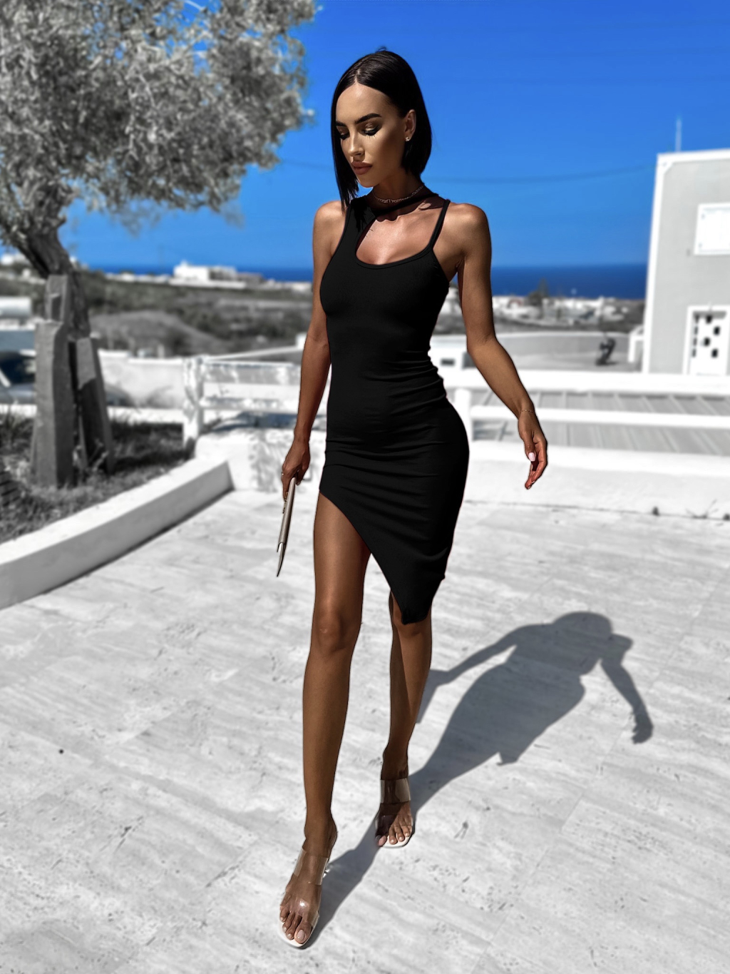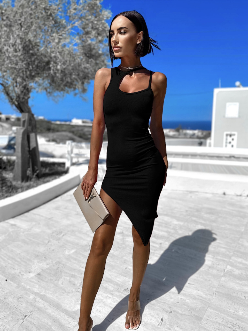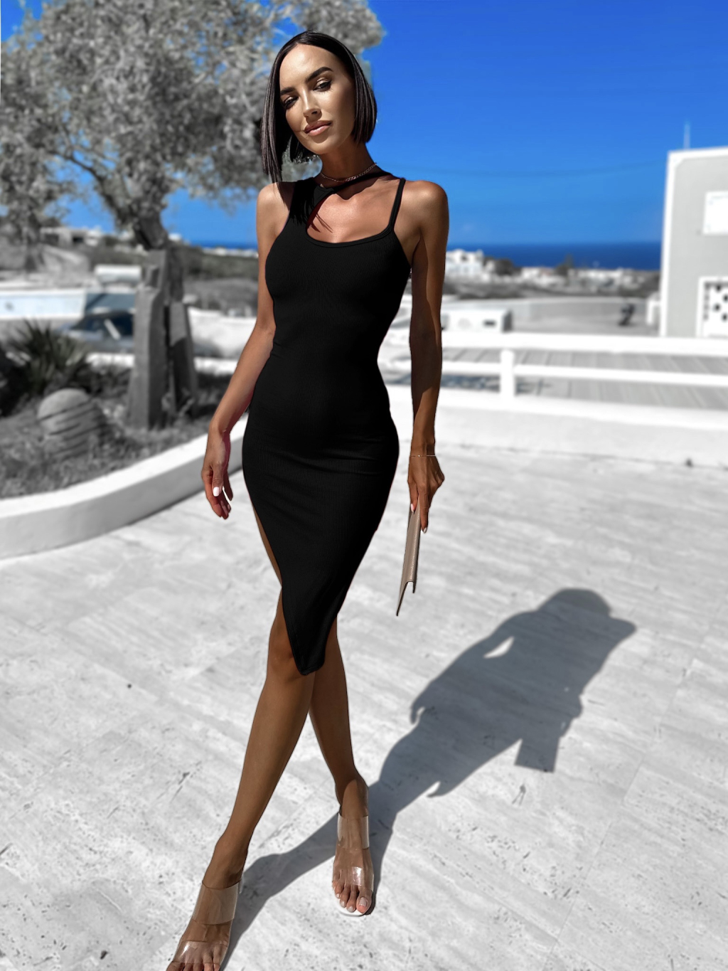Čierne rebrované šaty TARPE s rázporkom
