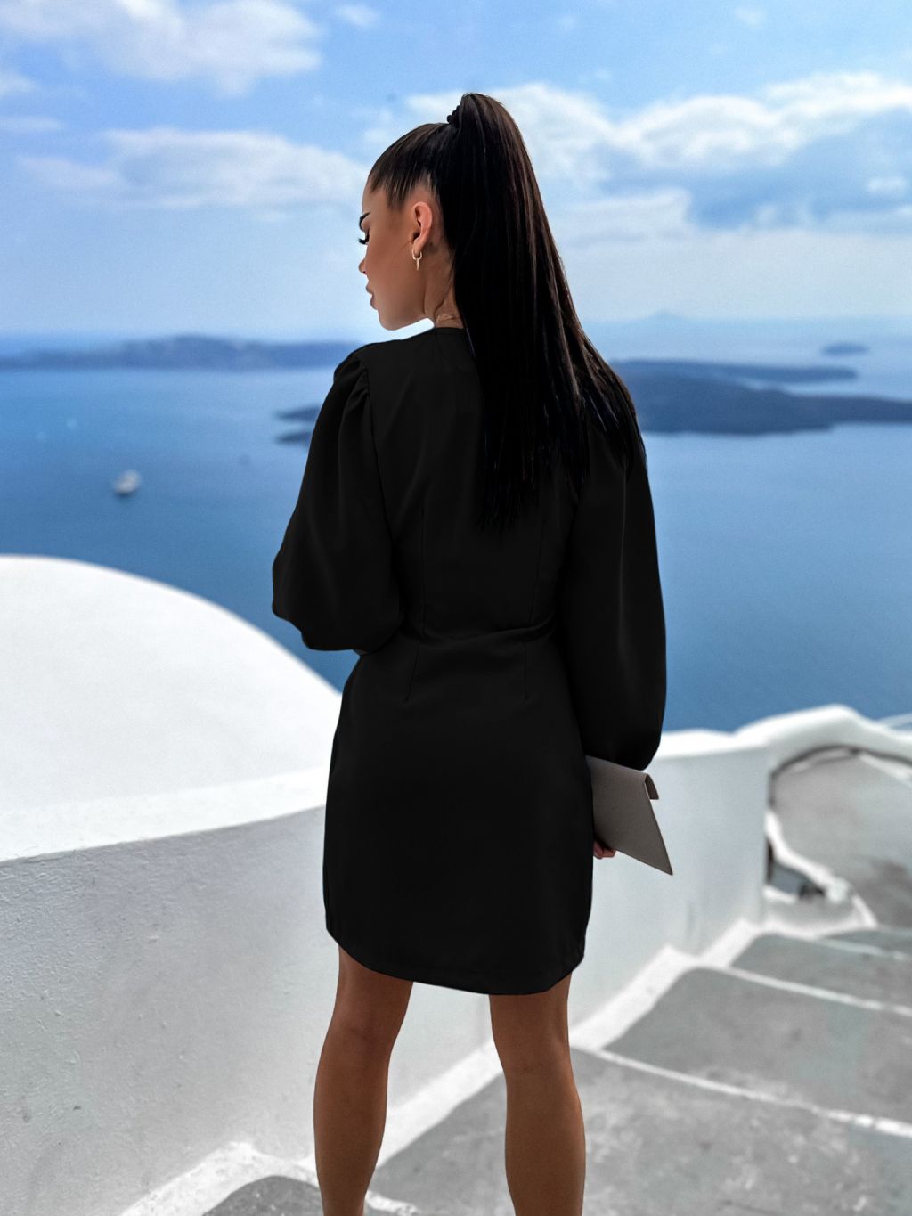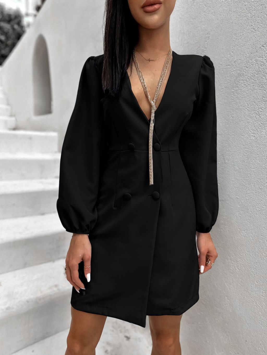 Čierne sakové šaty RELLIE s výstrihom do V