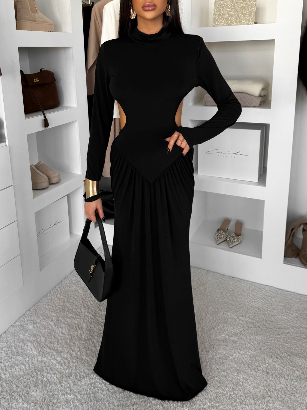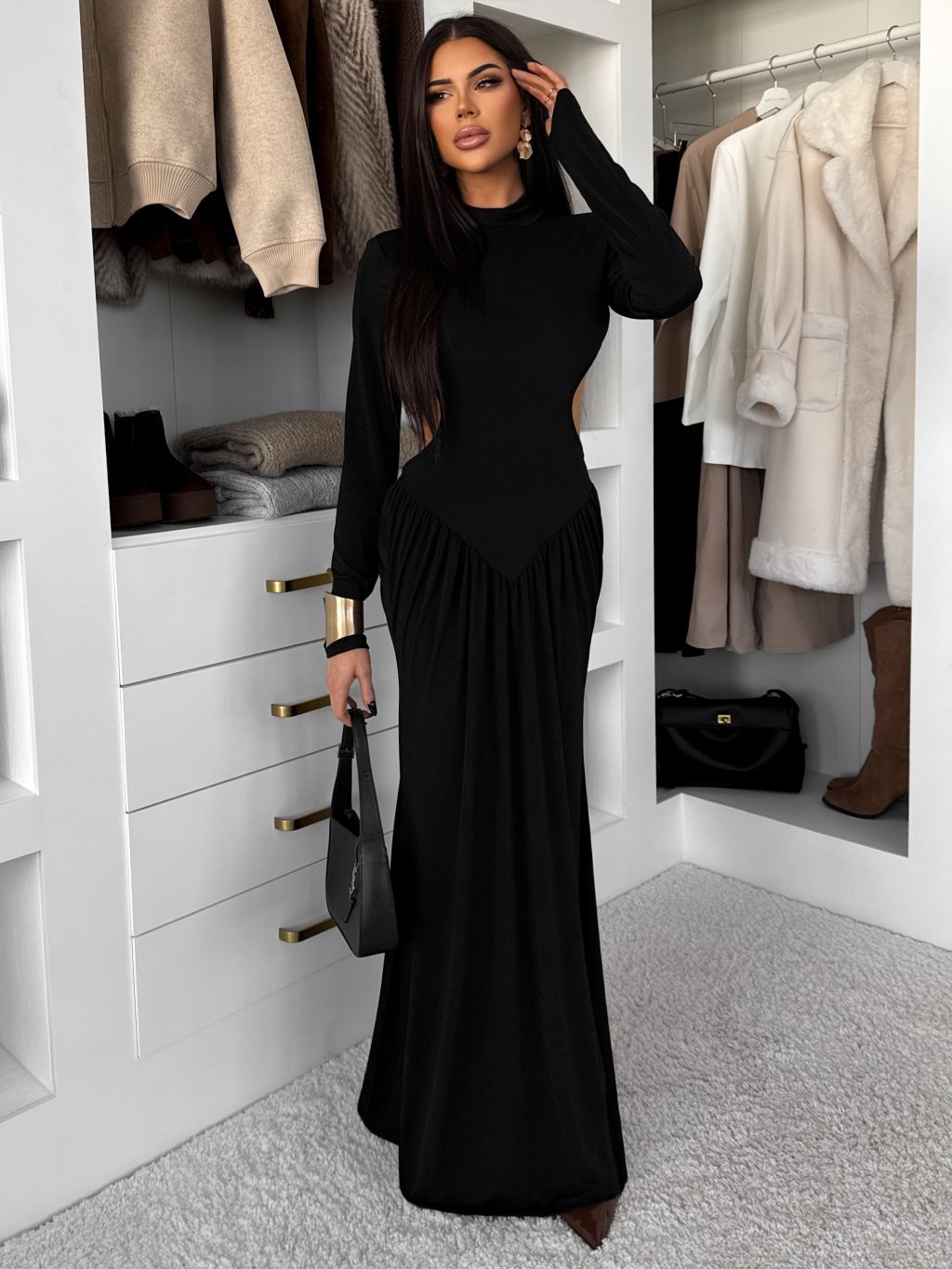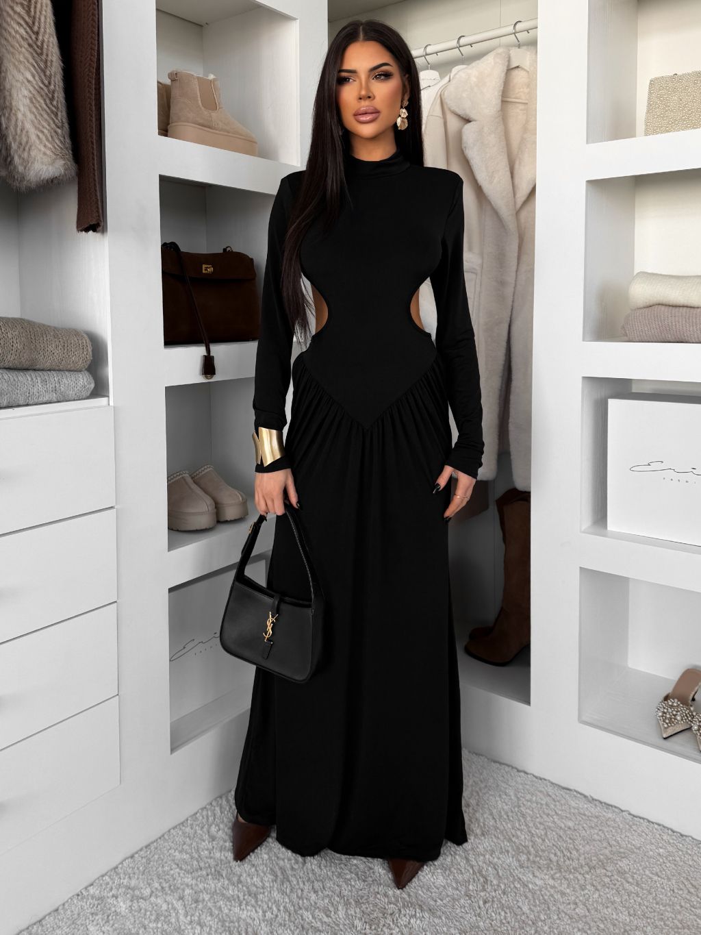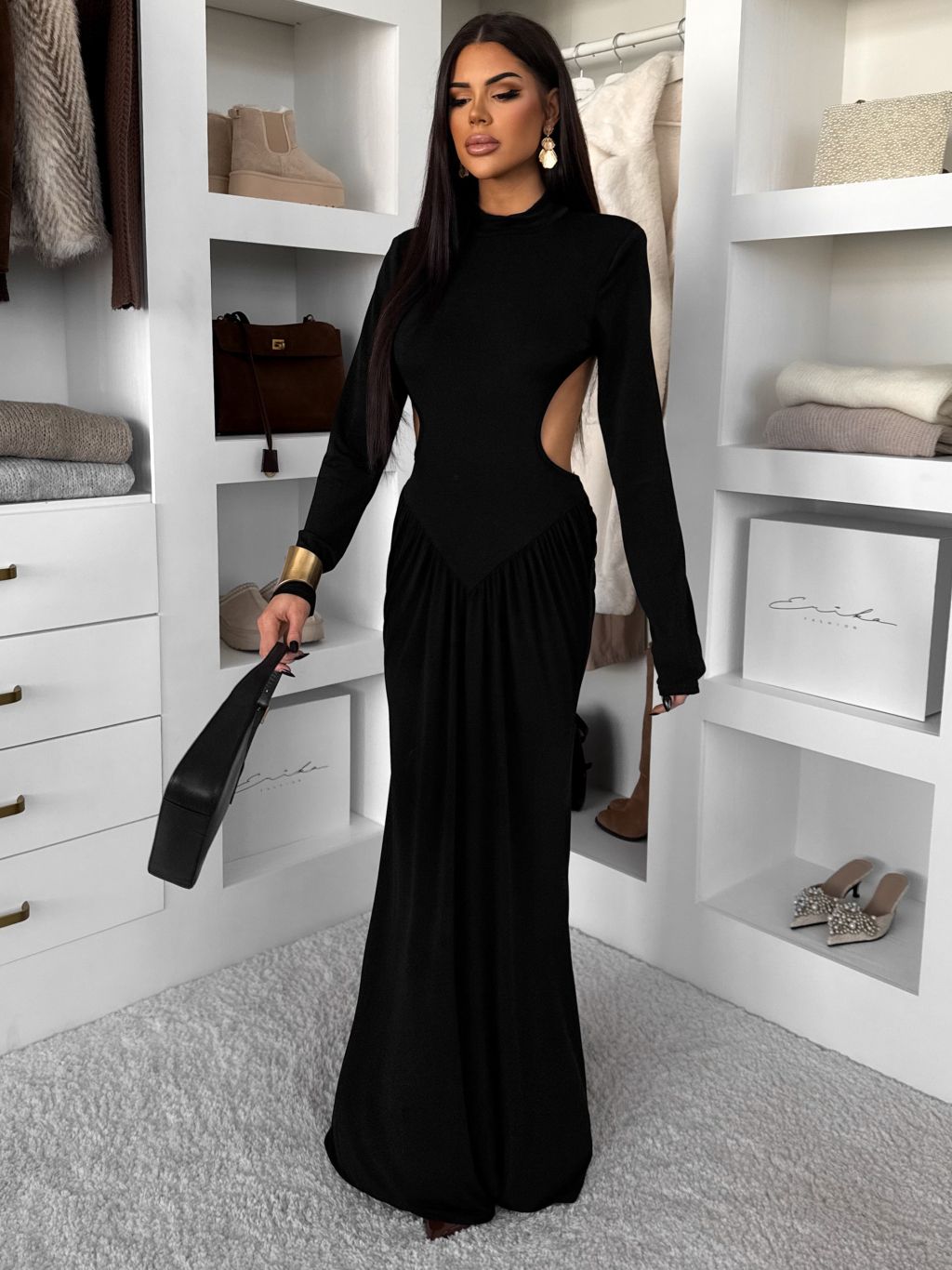 Čierne spoločenské dlhé šaty EVANIE s prestrihmi