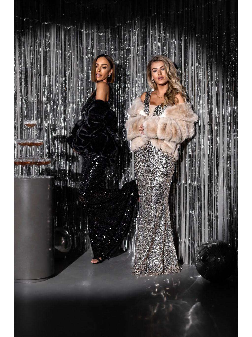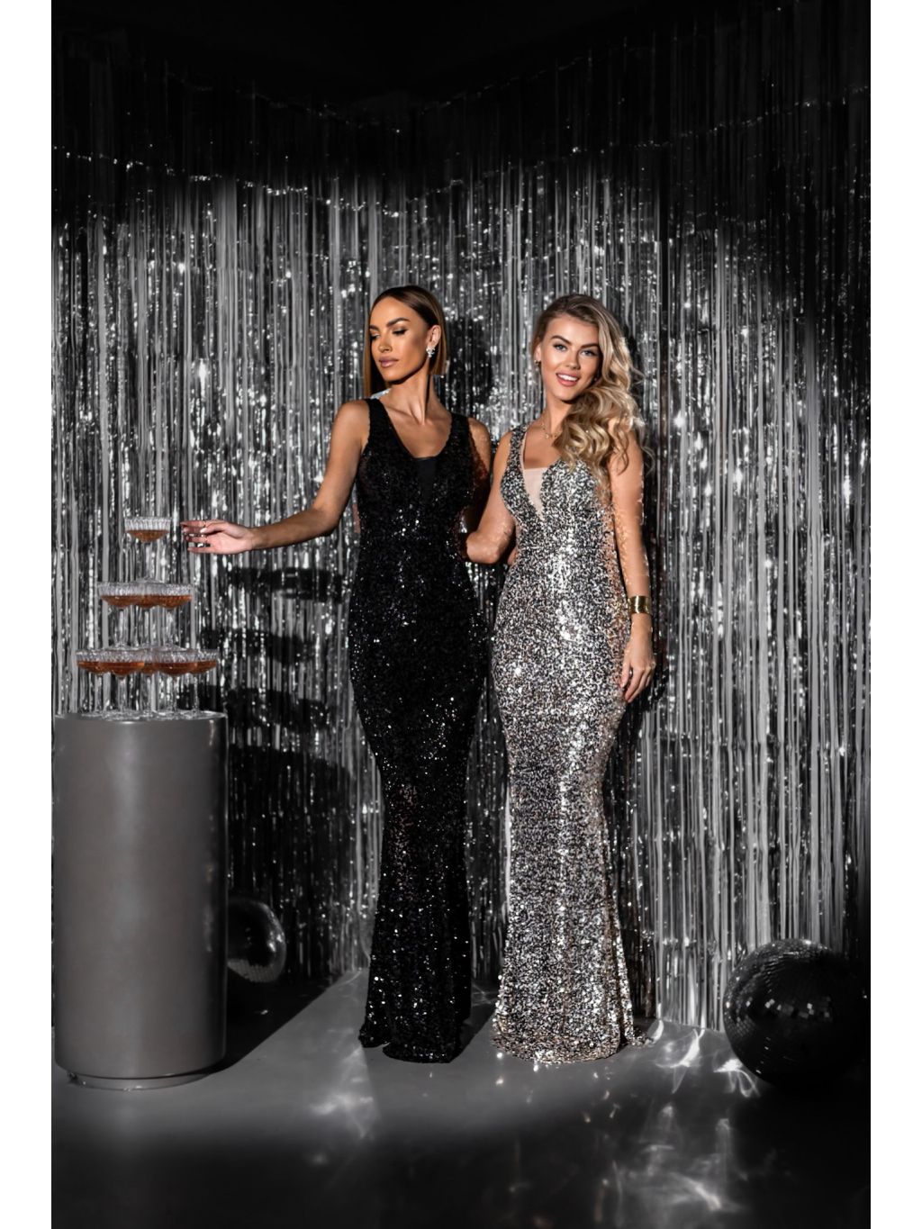 Čierne trblietavé dlhé šaty SOMNUS s flitrami