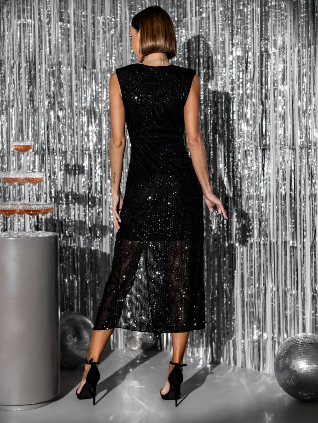 Čierne trblietavé elegantné šaty CHORILAT s flitrami