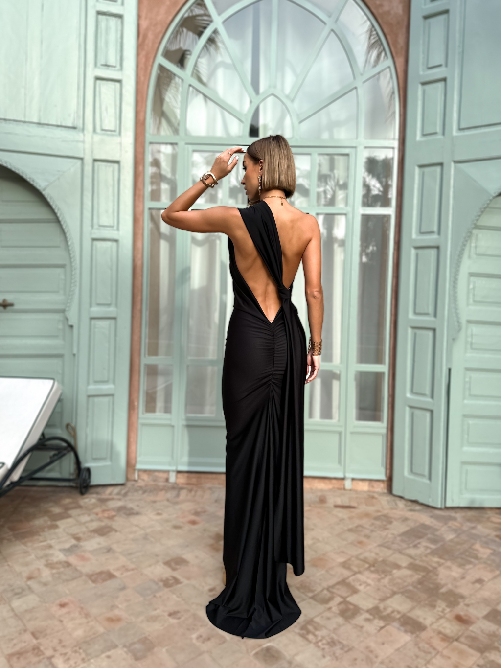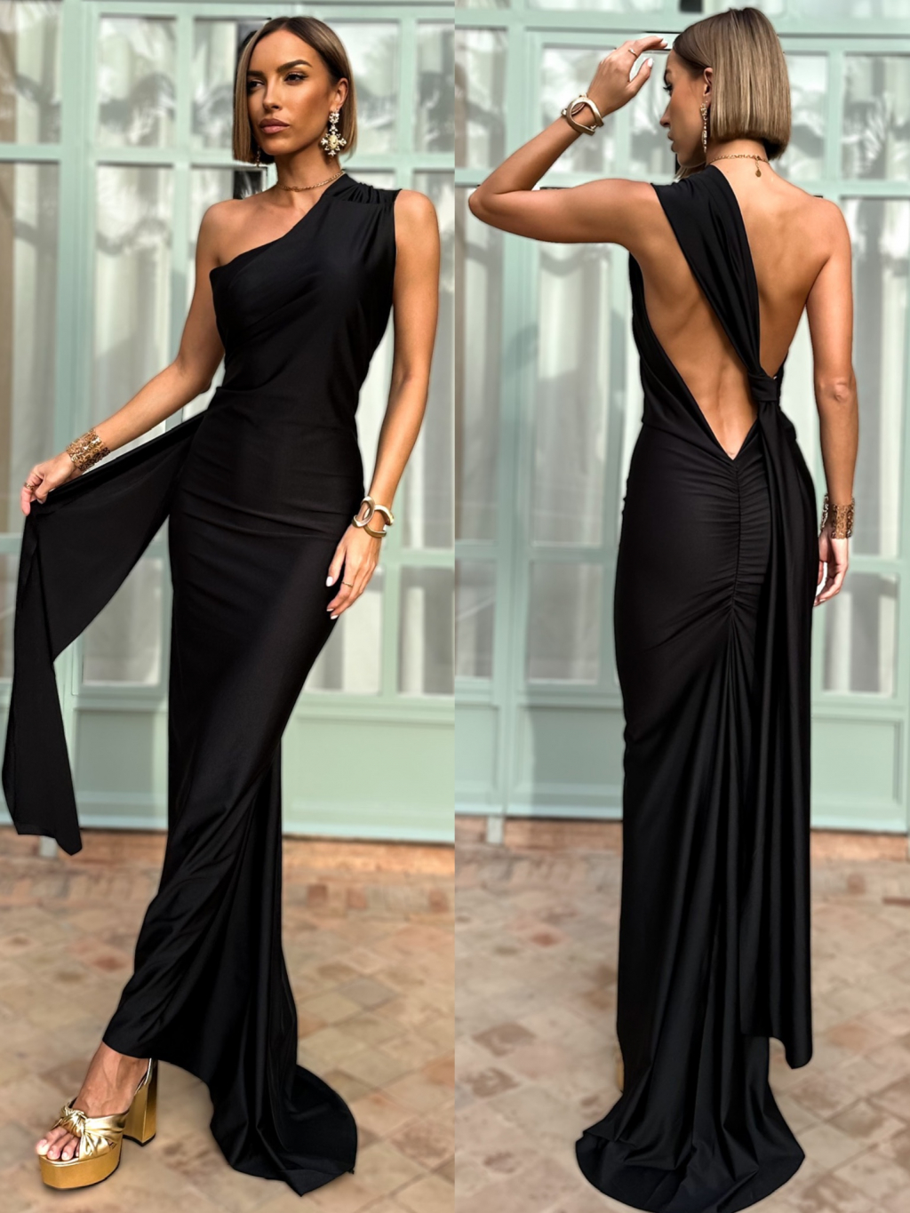 Čierne večerné dlhé šaty TEREUSU s odhaleným chrbtom