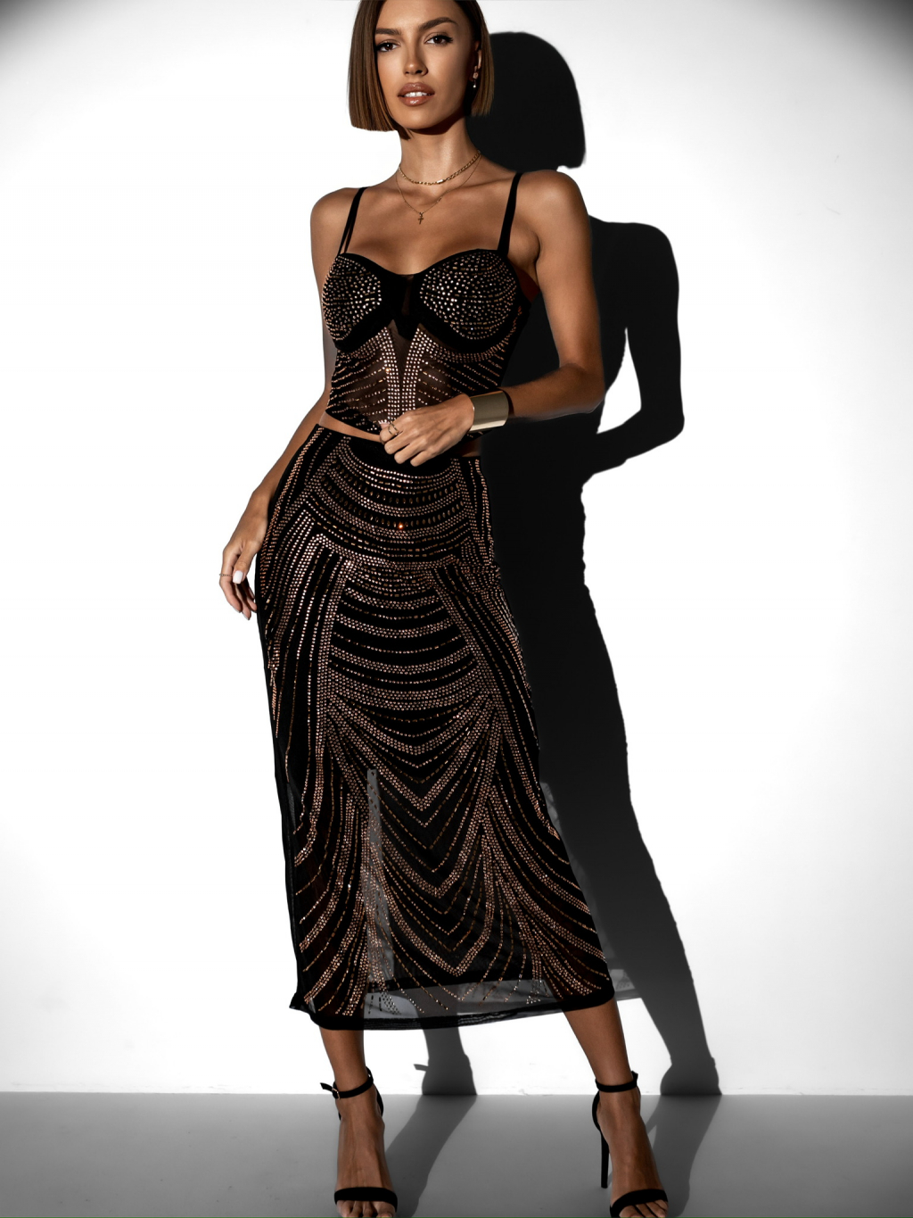 Čierno-zlatý dvojdielny komplet RIO s flitrami