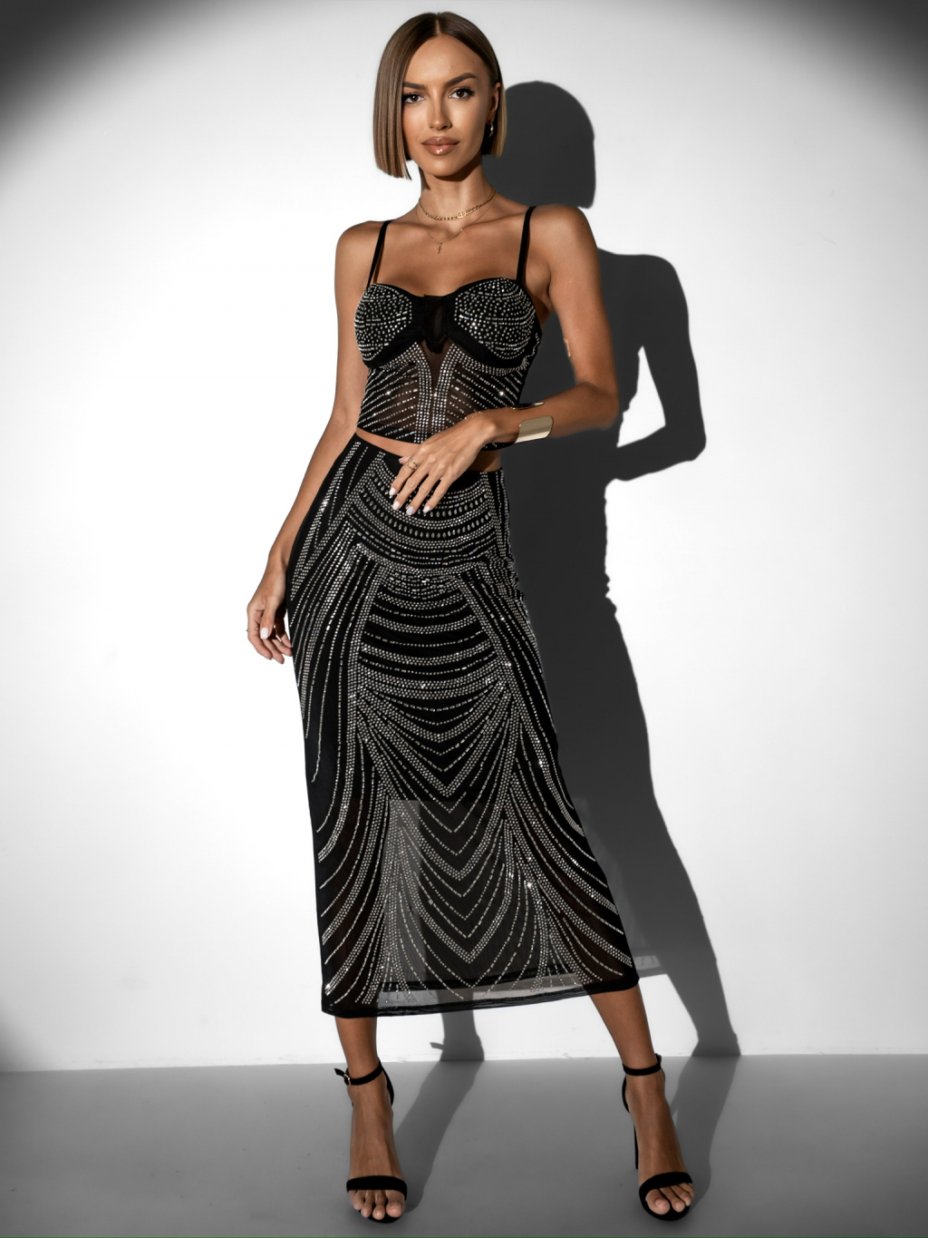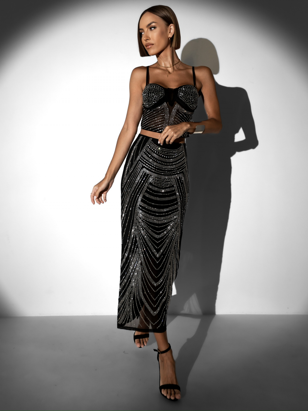 Čiernostrieborný dvojdielny komplet RIO s flitrami