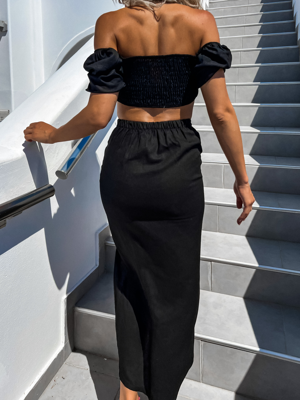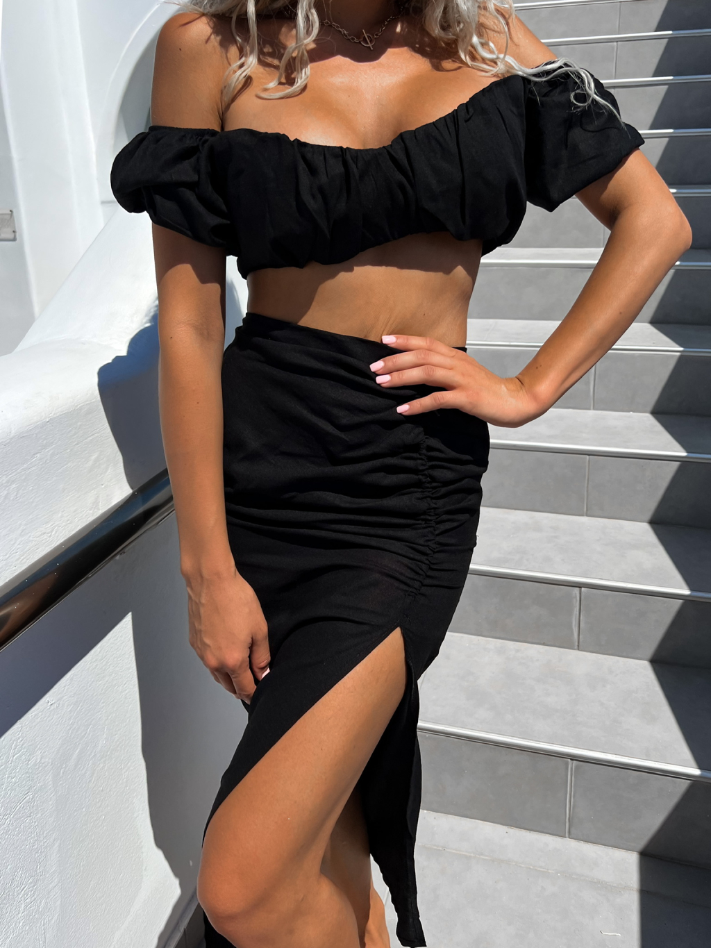 Čierny dvojdielny komplet MILESS s rázporkom