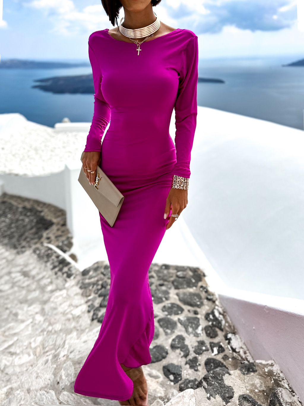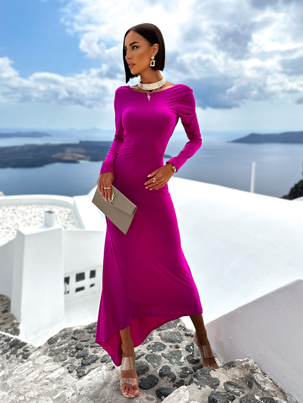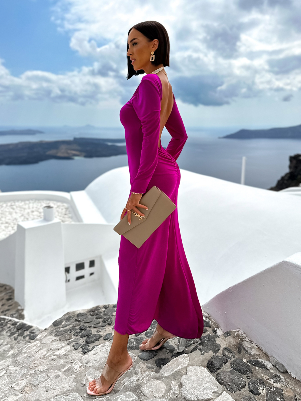 Fialové dlhé elegantné šaty NINTENI s prestrihom na chrbte