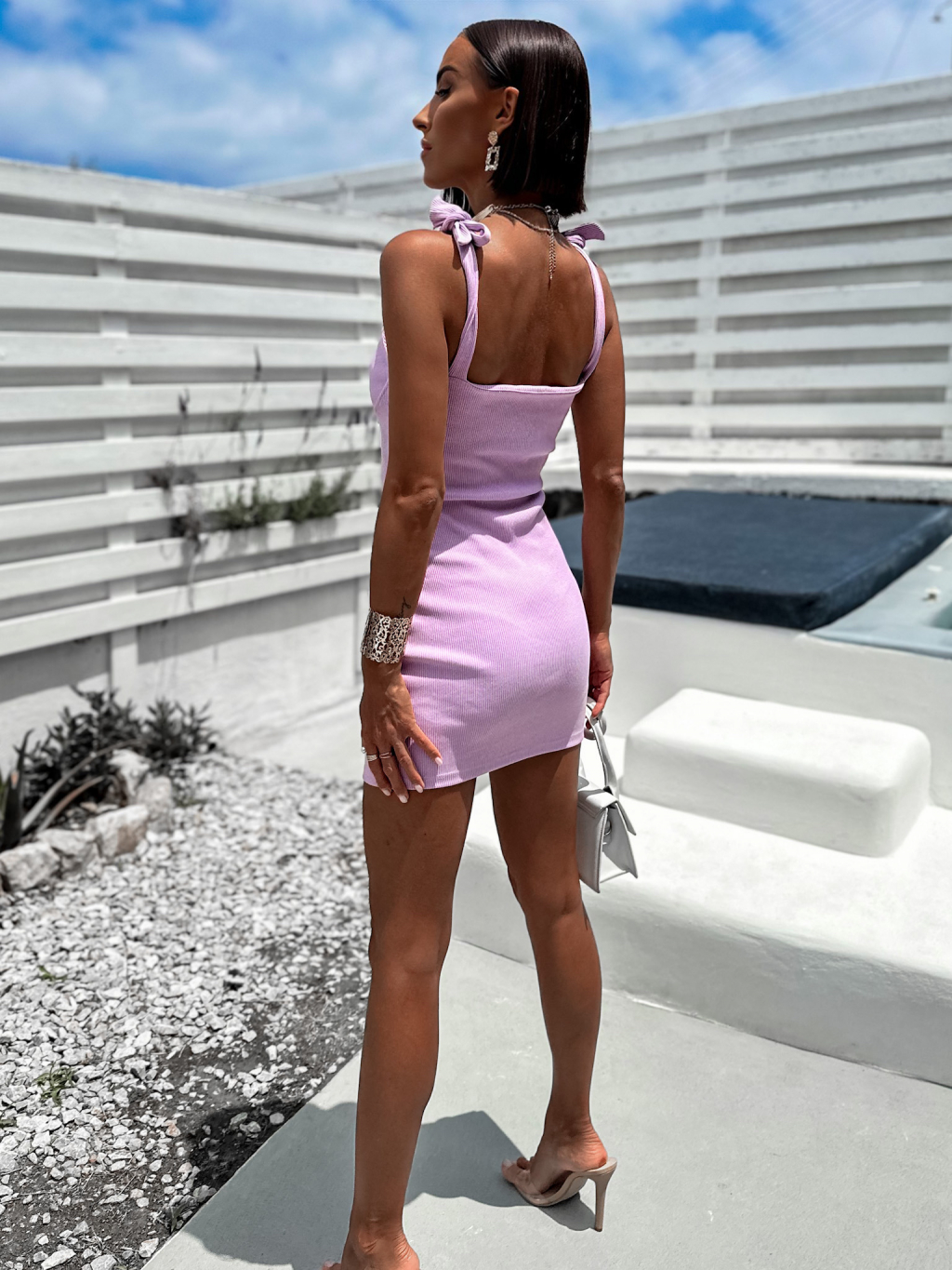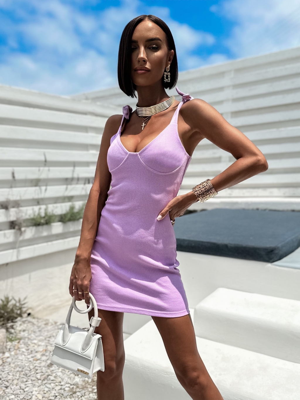 Fialové elegantné šaty MARLEN so zaväzovacími ramienkami