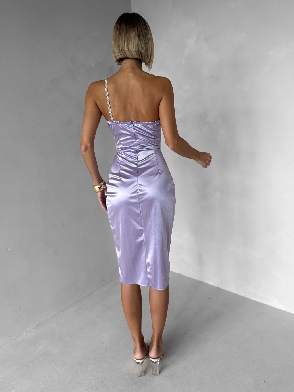 Fialové koktailové šaty WAMPRI s trblietavým ramienkom