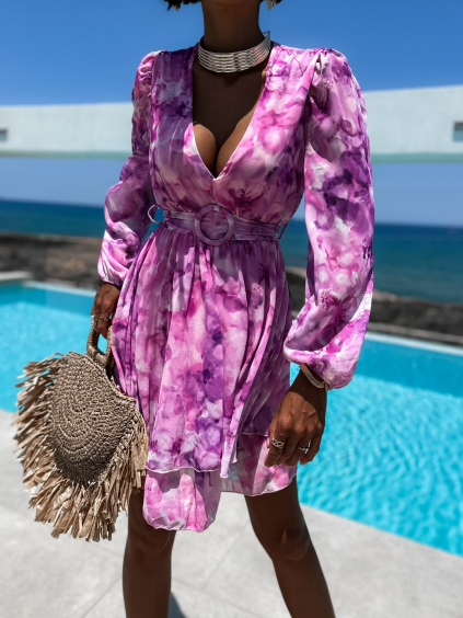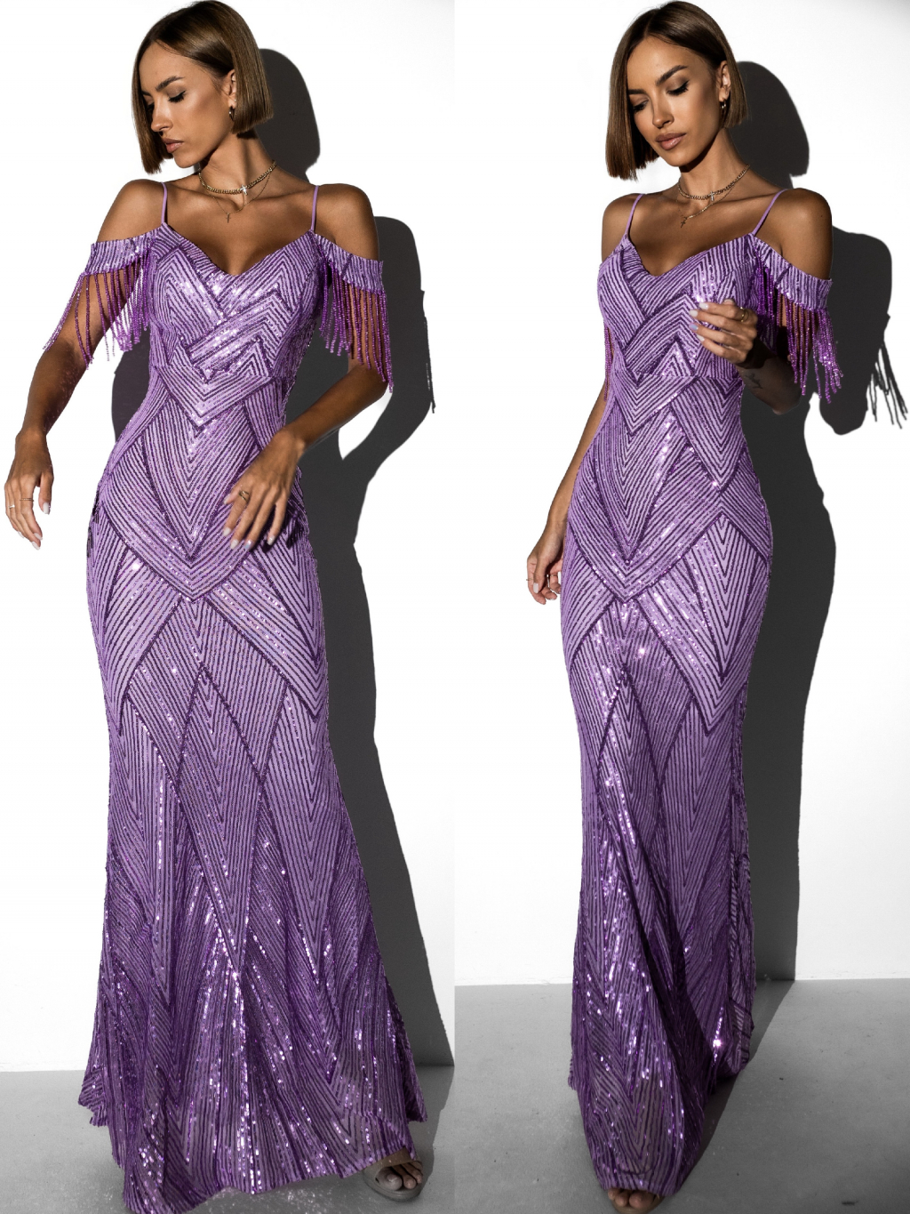Fialové večerné trblietavé šaty NATSU s flitrami