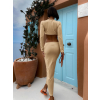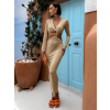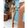 Hnedé dlhé elegantné šaty LANTIC s dlhým rukávom